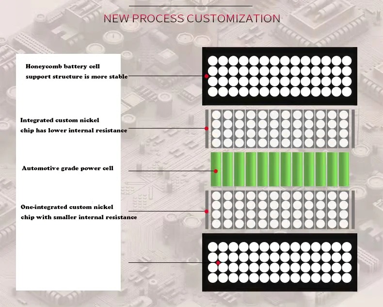 ● Индивидуальная цельная Защитная плата для повышения безопасности батареи; Более высокая безопасность.