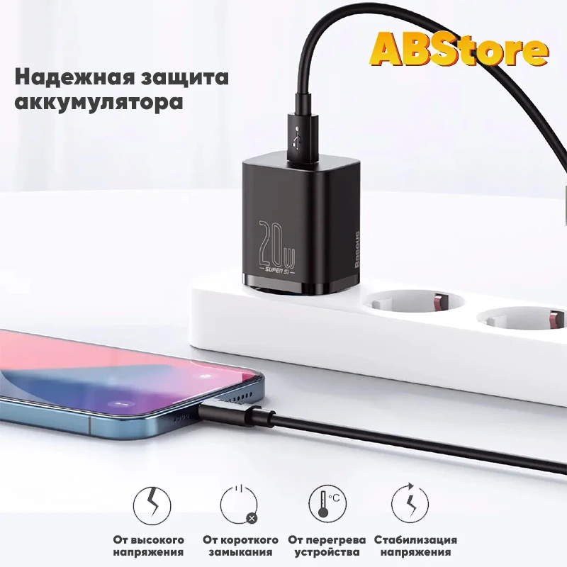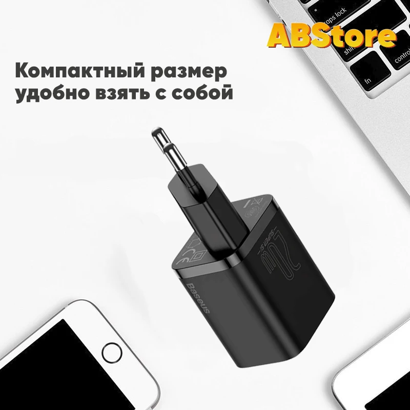 Baseus зарядный адаптер USB Type C 20Вт 3.0 А QC3.0 зарядное устройство для MacBook M1 Pro iPhone iPad Samsung - купить
