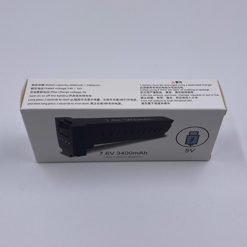 7,6 V 3400mAh перезаряжаемый литий-полимерный аккумулятор, обеспечивает более длительное время полета до 28 минут.