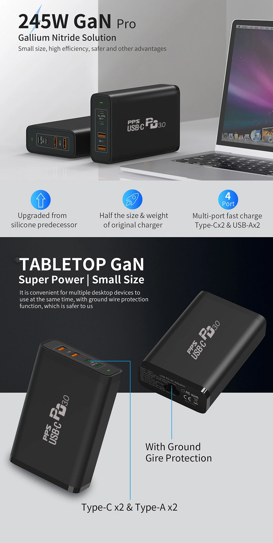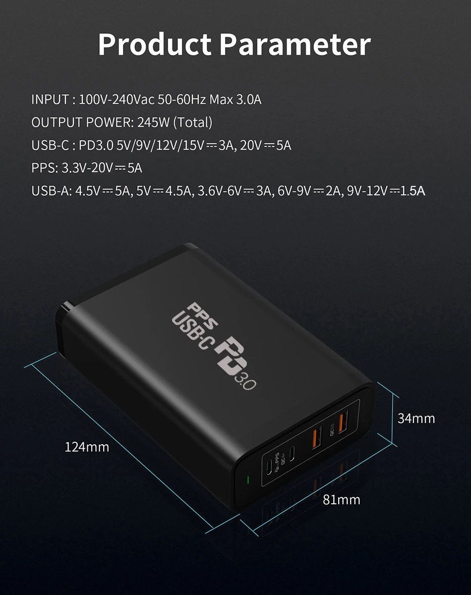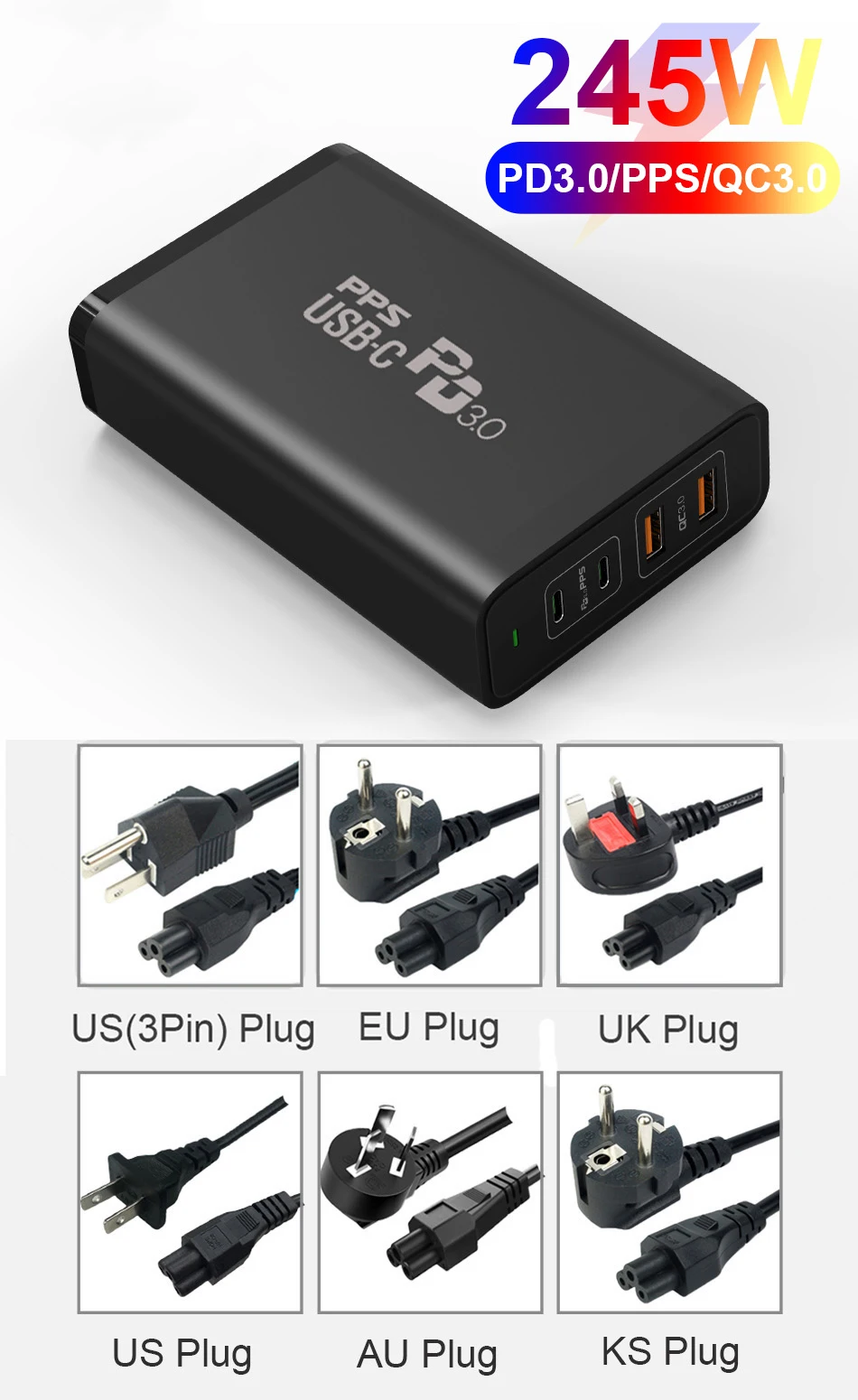 TQUQ 245W GaN зарядная станция, USB C PD100W PPS супер быстрое зарядное устройство для MacBook iPad Pro iPhone13 Samsung Xiaomi Huawei ноутбука