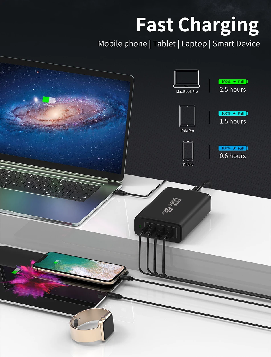 Отзывы о Зарядная Станция TQUQ 245 ВТ USB C PD 100 Вт PPS сверхбыстрое зарядное устройство для MacBook