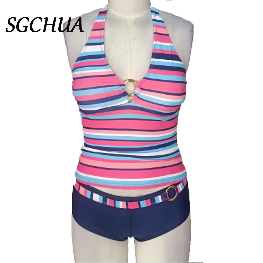 Купальный костюм из двух частей размера плюс купальник в полоску женские шорты - купить