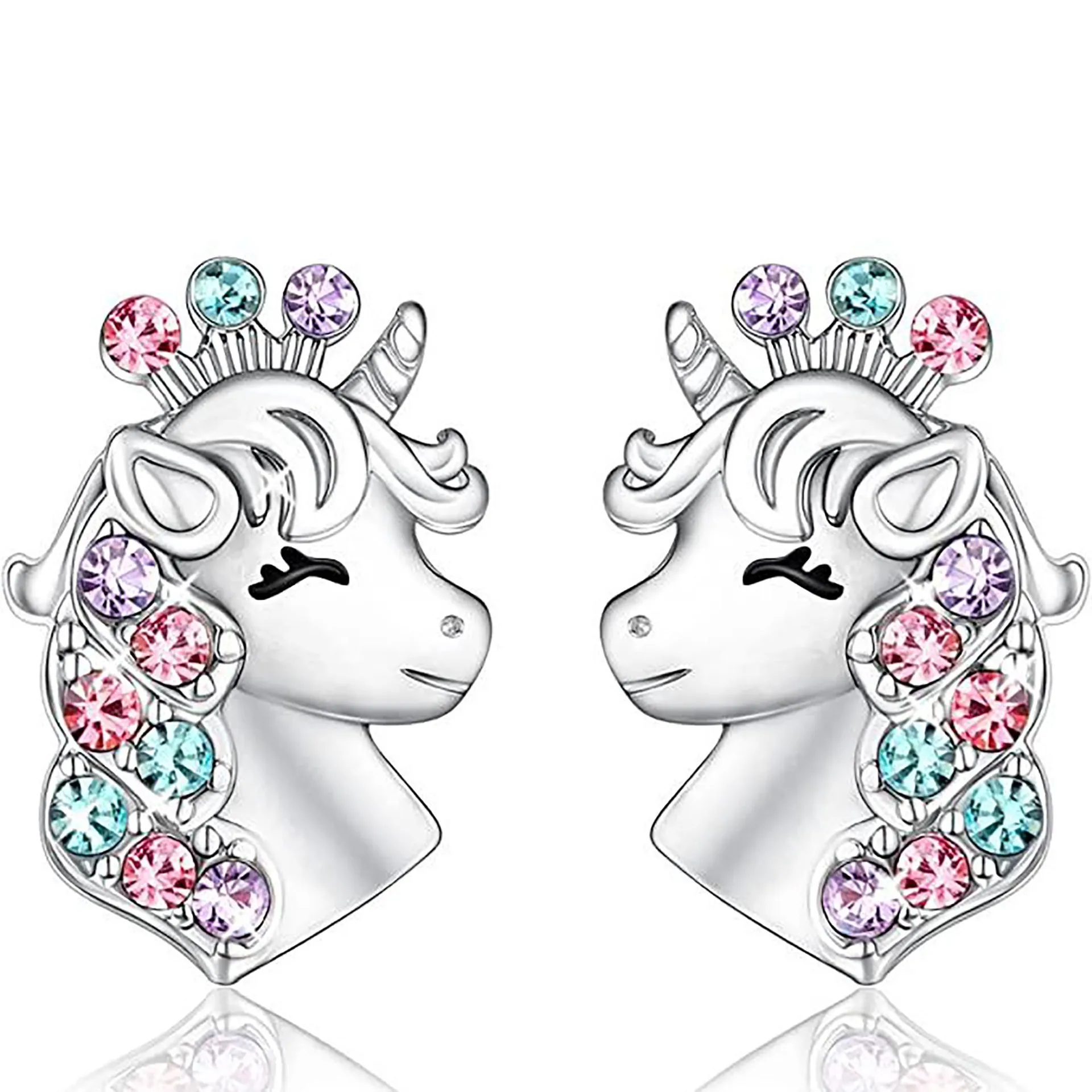 Отзывы о 1pcs New Fashion One Horn Cat Butterfly Rainbow Animal Earrings Color Zircon Jewelry Children's Gift Accessories Украшения и