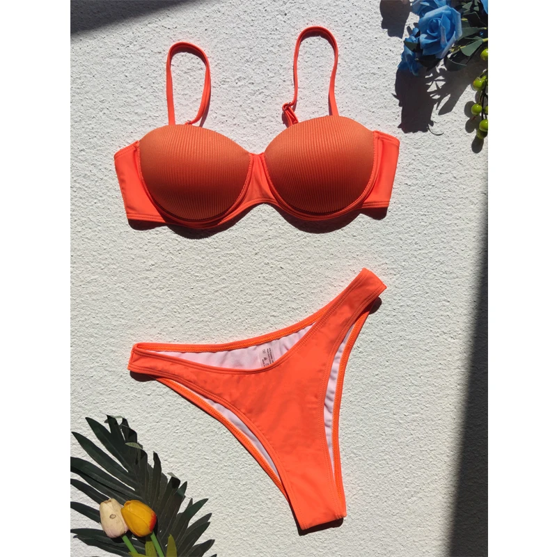 Отзывы о Пляжная одежда бикини на лямках 2022 Оранжевый Комплект из двух предметов женский