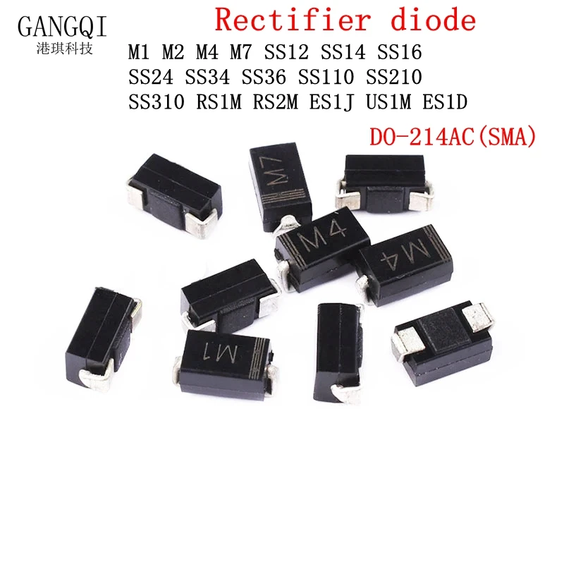 100 шт. выпрямительных диодов SMA M1 M4 M7 SS12 SS14 SS16 SS24 SS34 SS26 SS36 SS110 SS210 US1M RS2M RS1M ES1D 1N4007 DO-214AC на - купить