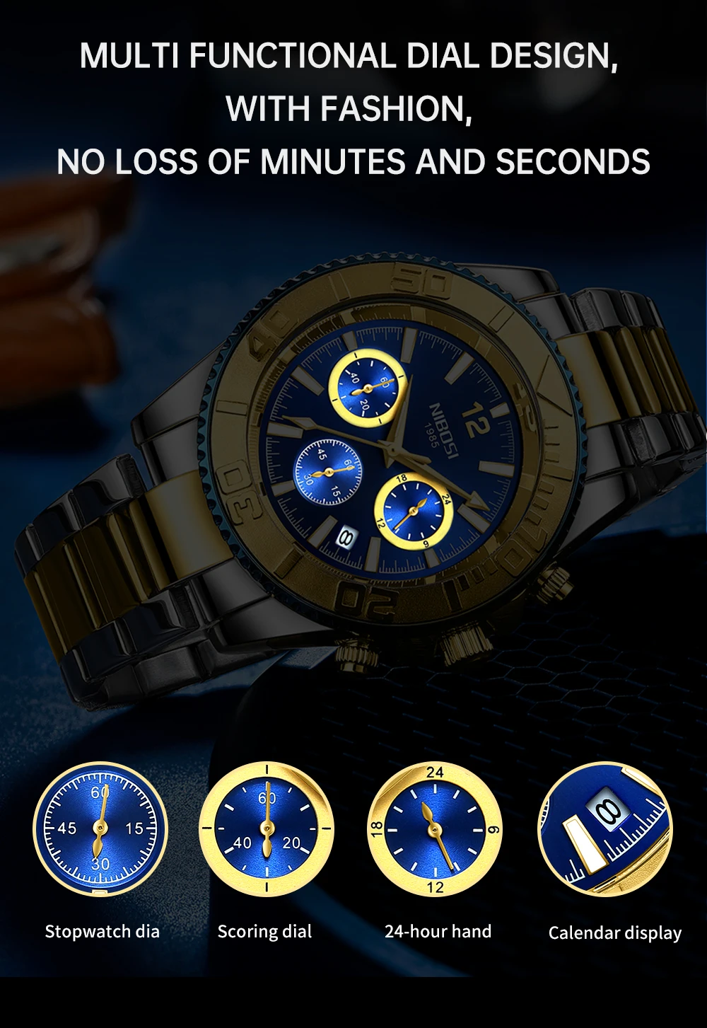 Отзывы о Часы для мужчин от NIBOSI из нержавеющей стали с функцией хронографа повседневного ношения
