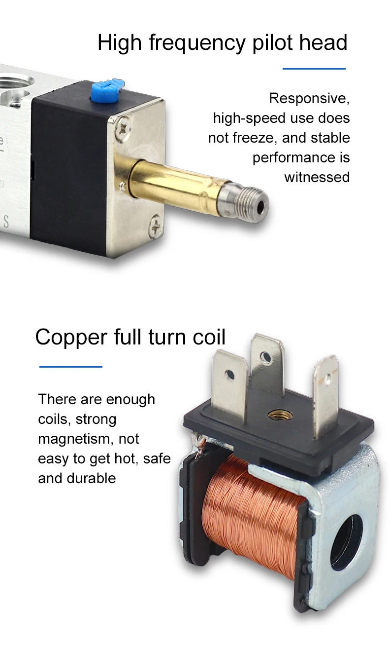 | Тип жидкости:Воздух, газРежим работы:NO + NC (внутренний пилот)Напряжение катушки:DC: 12 В, 24 В переменного тока: 110 В, 220 ВТип соленоидного клапана:5 портов 2 позицииРабочее давление:1,5-8kgf/cm2Доказательство давления:1,5 МПаМатериал корпуса:Алюминиевый сплавПосылка:Как на картинке | 1. Износостойкость, длительный срок службы-тонкий корпус заземленного клапана, гладкая без заусенцев. Поверхность тщательно отполирована, а внутренняя стенка мелко отполирована 3 раза, нет заусенцев и нет утечки воздуха на интерфейсе.2, импортные уплотнения-6 высококонцентрических уплотнительных колец, самосмазывающееся уплотнение, износостойкость, хорошая стабильность, гладкая и низкая устойчивость.3. Высокочастотная головка пилота реагирует, высокоскоростное использование не замораживает, и стабильная производительность очевидна.4, медная катушка с полным поворотом-достаточно катушек, сильный магнетизм, не легко получить горячее, безопасное и прочное. |