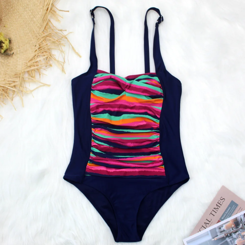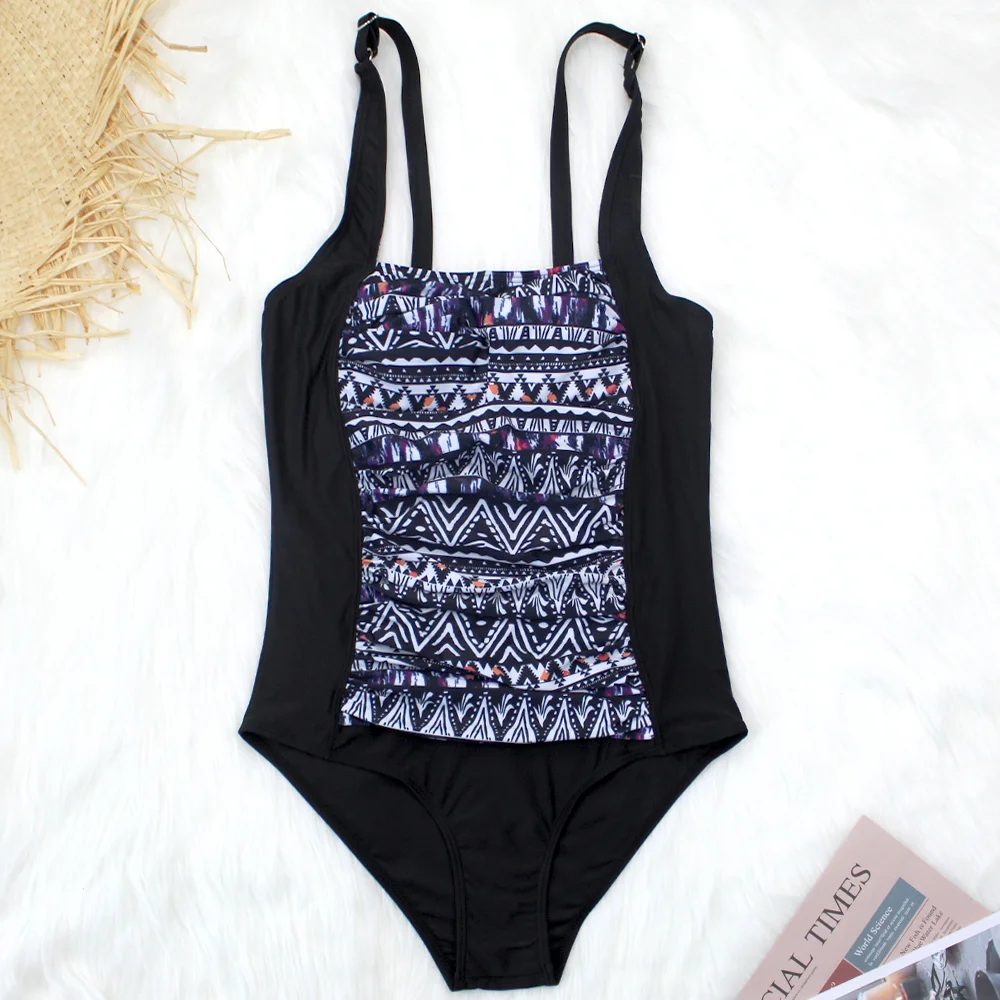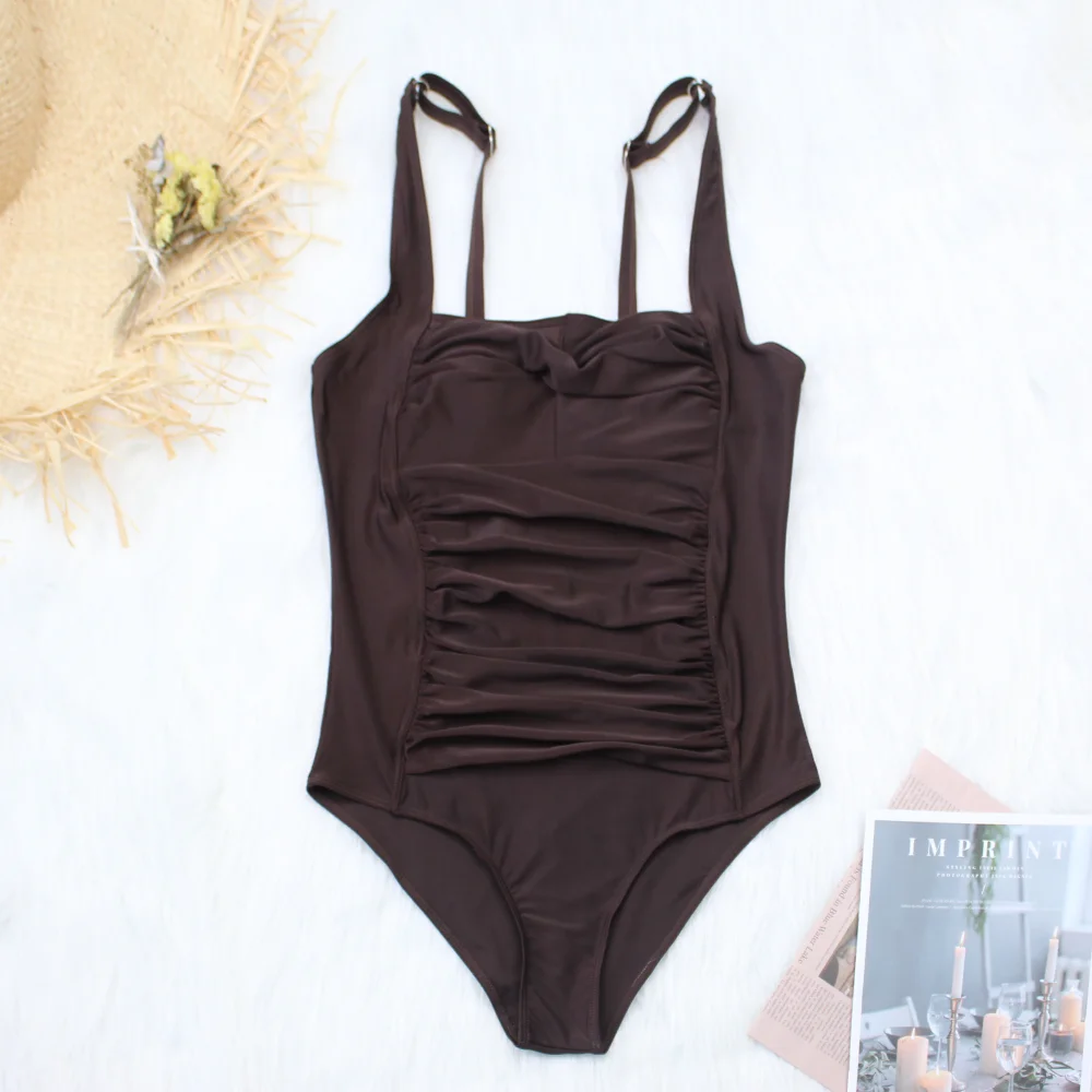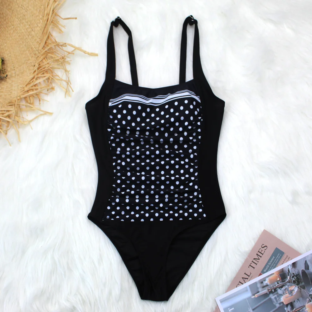 Купить Женский цельный купальник плиссированный классический черный сексуальный
