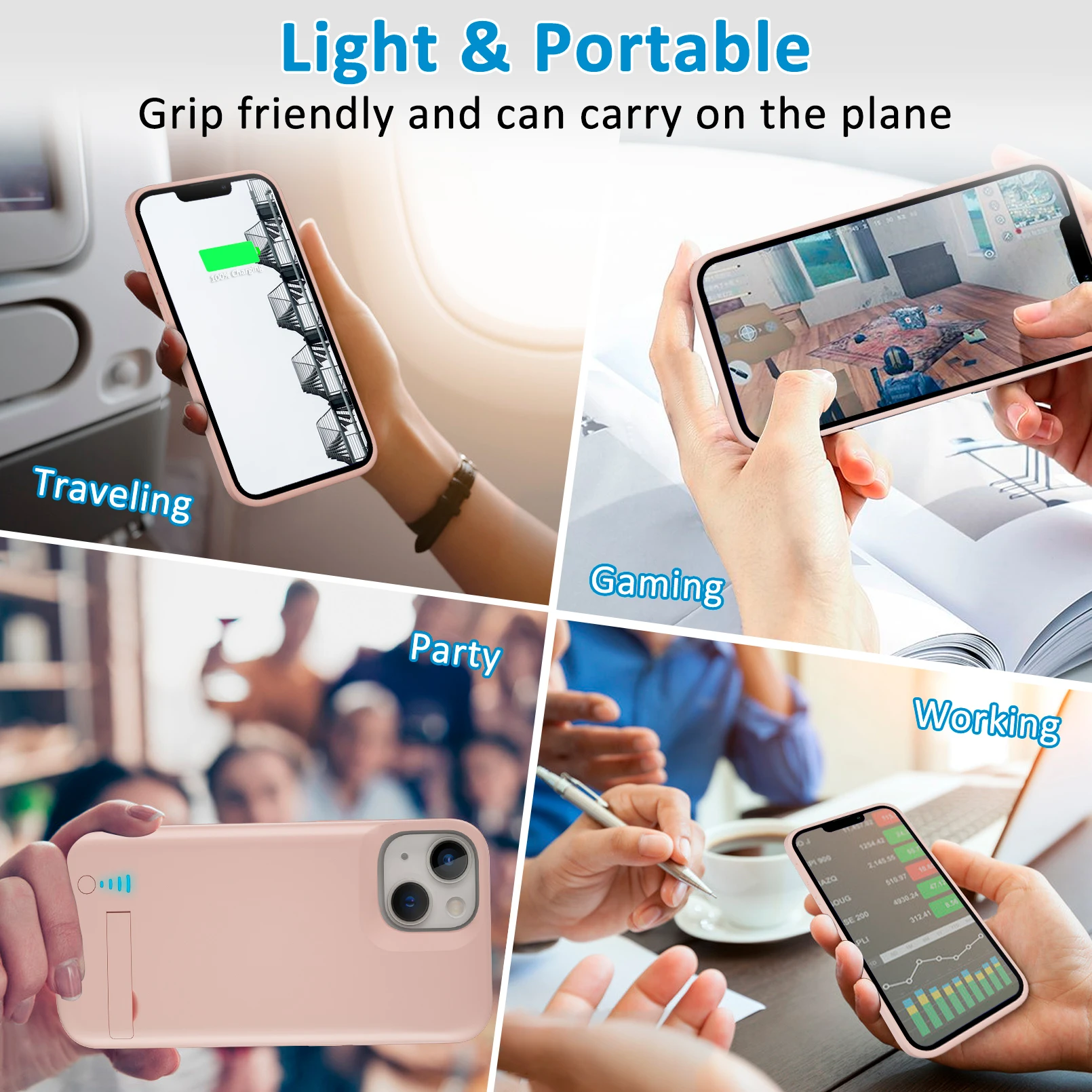 Купить High Speed External Battery Charger Case For iPhone 13 13Mini 13Pro Max Charging Portable Powerbank Cover Black/Pink | Мобильные