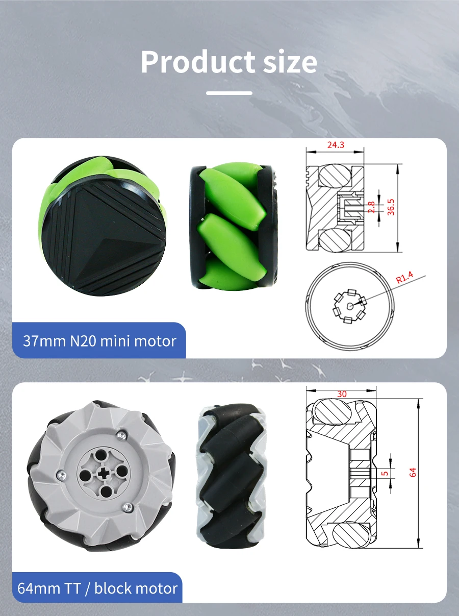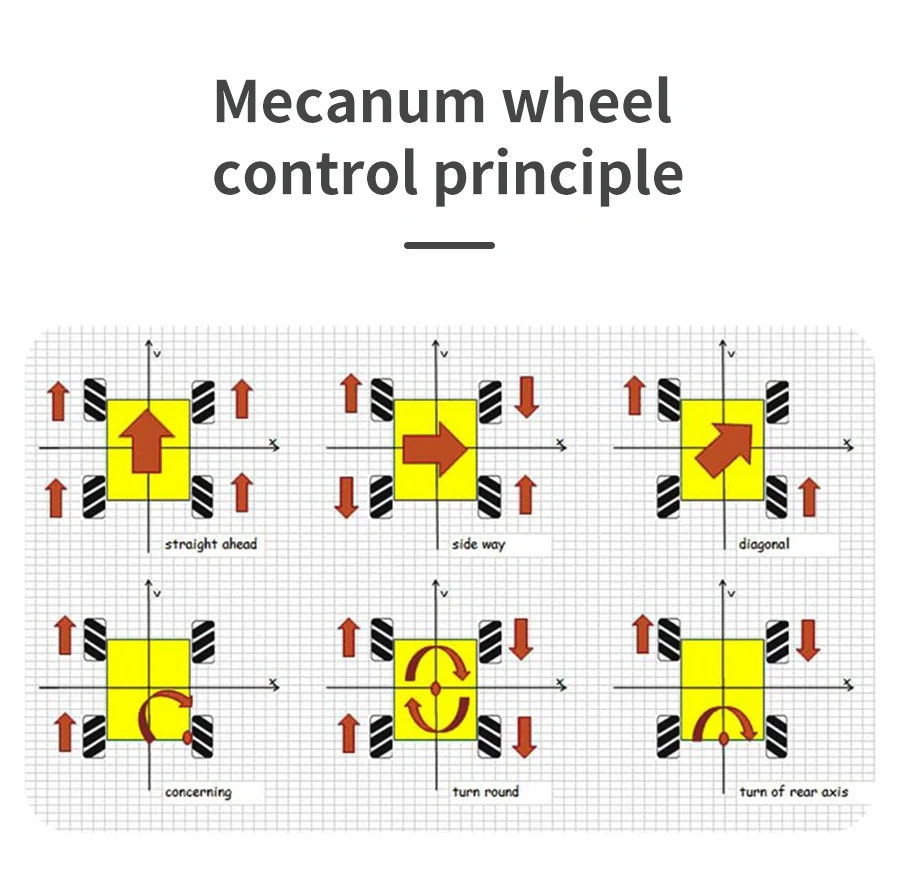 Это компактная конструкция, гибкое движение и долговечность в использовании всенаправленного колеса для всех типов автомобилей-роботов. По сравнению с другими обычными колесами, это колесо может позволить вашему автомобилю достичь 360 ° движения для более быстрого путешествия в различных экологических условиях. По умолчанию устанавливается поперечный монтажный порт, который может быть подключен к сервоприводу строительного блока и двигателю строительного блока, что позволяет легко построить всенаправленный мобильный умный автомобиль строительного блока. Для подключения к двигателям TT будут предусмотрены Четыре монтажных адаптера. Кроме того, мы также предоставим некоторые обучающие материалы в качестве справочной информации, которая содержит различные мобильные методы управления, такие как перевод влево и вправо, широкоугольный дрейф, наклонное движение на 45 °, движение квадратной дорожки и т. Д.
