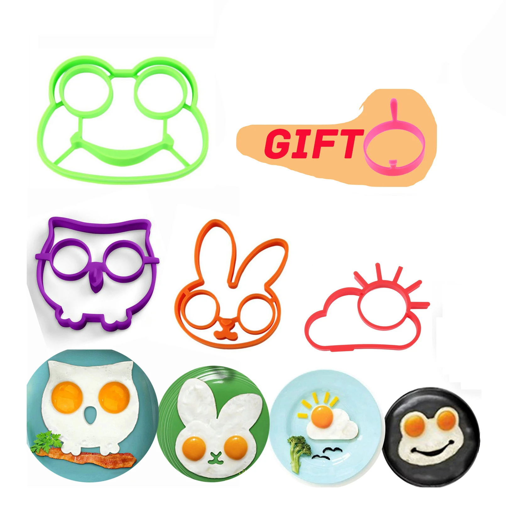 4/5 шт сова кролик череп солнце лягушка форма жареное яйцо силиконовая Интересный - купить