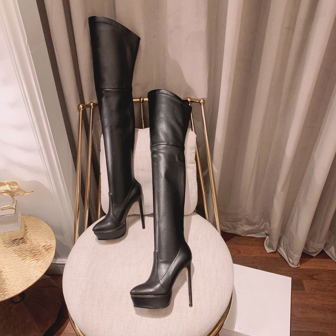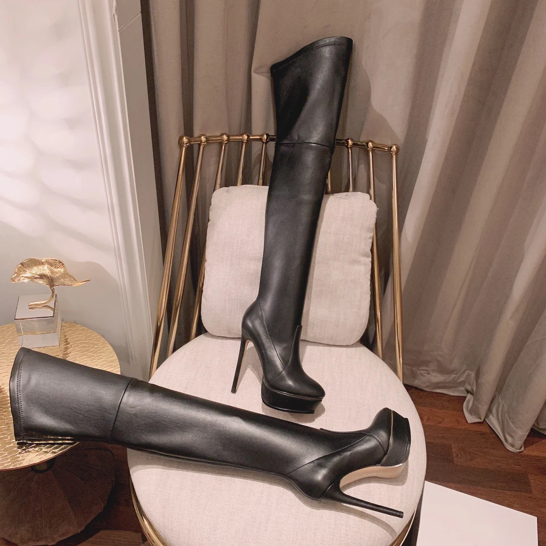 Женские сапоги на платформе UVRCOS черные кожаные до бедра высокие выше колена - - купить