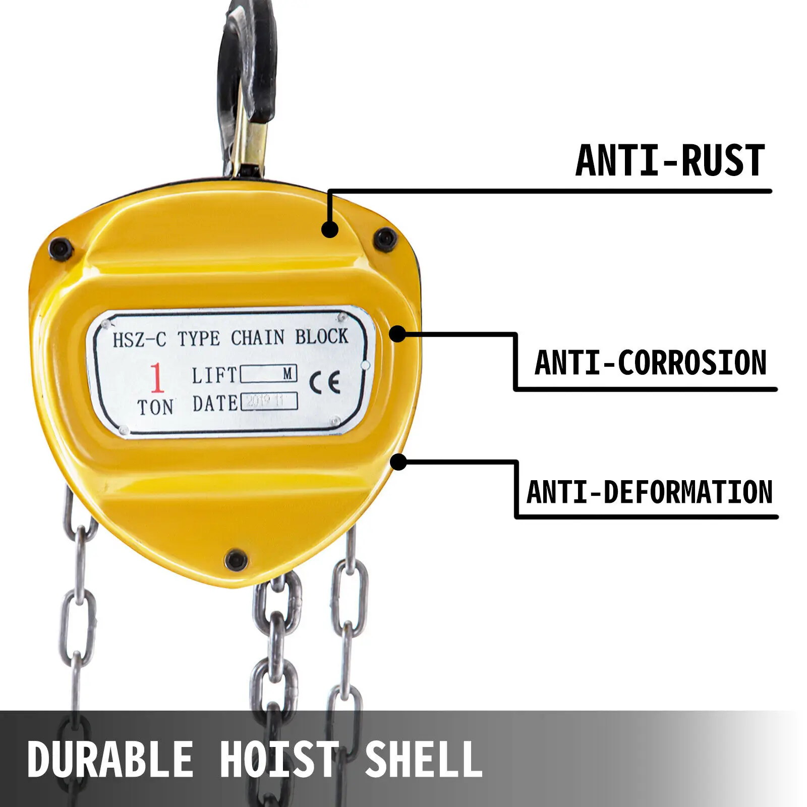 С цепью длиной 3 м, цепные тали увеличивают диапазон использования; Затемненная подъемная цепь и оцинкованная ручная цепь обладают сильной устойчивостью к коррозии и износу.