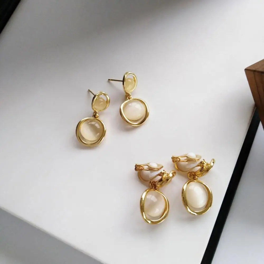 Отзывы о Женские винтажные серьги-гвоздики с двумя опалами модные круглые украшения