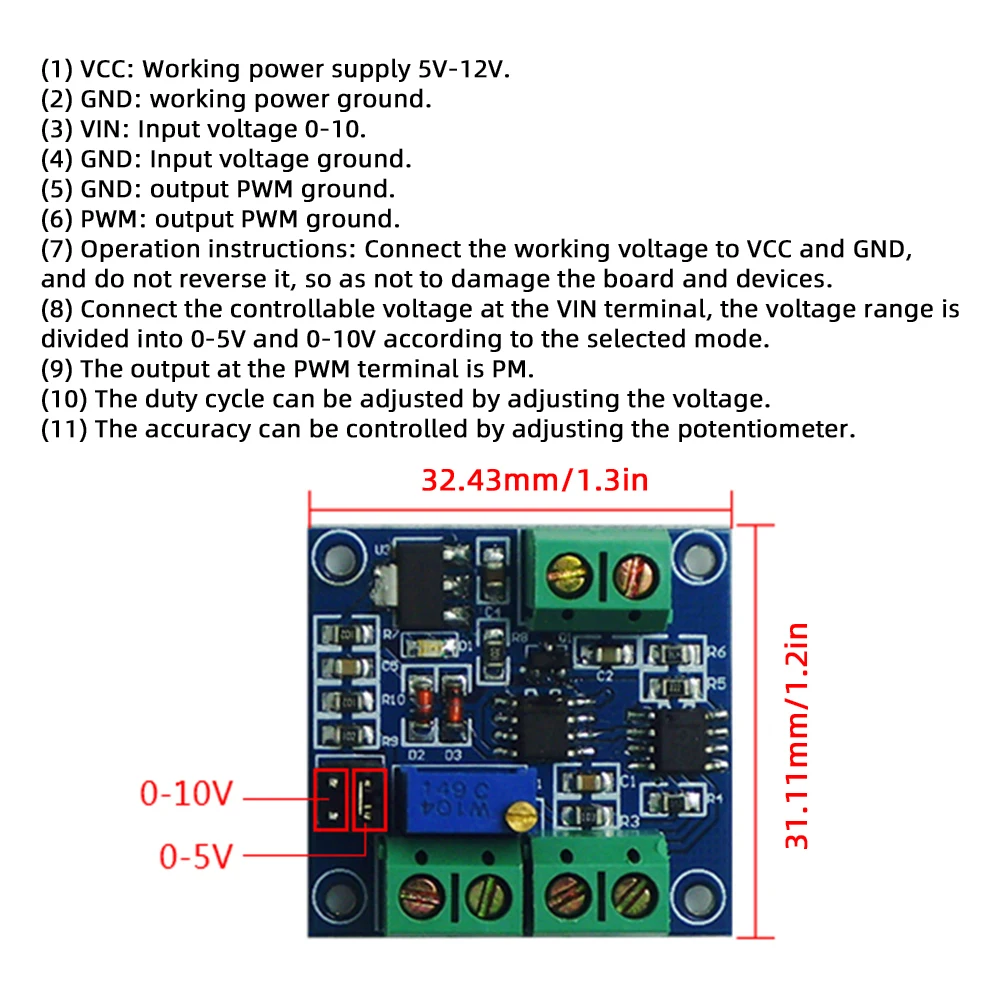 Преобразователь напряжения в ШИМ модуль 0-5 В/0-10 В до 0%-100% для PLC MCU аналого-цифрового сигнала ШИМ Adjustabl преобразователь силовой модуль