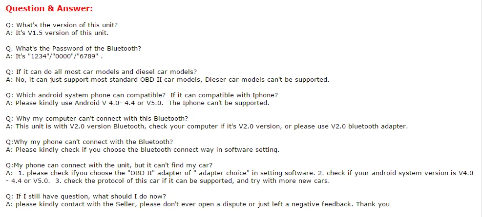 1.Потому что это устройство может поддерживать несколько брендов, и невозможно проверить его на всех автомобилях, поэтому мы не можем 100% убедиться, что он может быть использован на вашем автомобиле, возможно, вы можете купить один, чтобы попробовать!