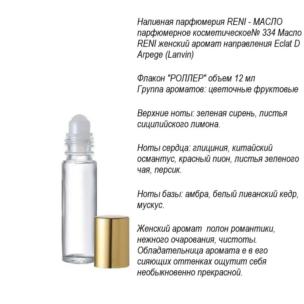 МАСЛО RENI № 334 женский аромат направления Eclat D Arpege (Lanvin) флакон "РОЛЛЕР" объем 12 - купить