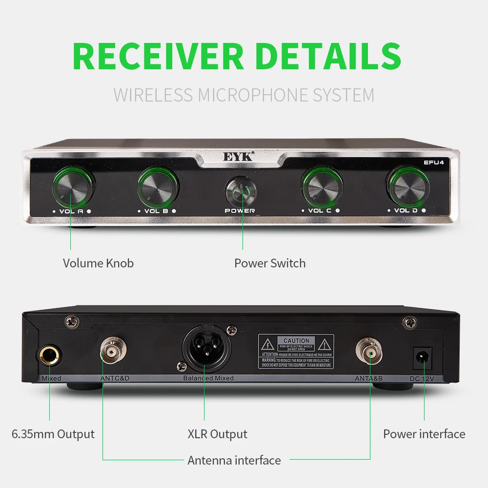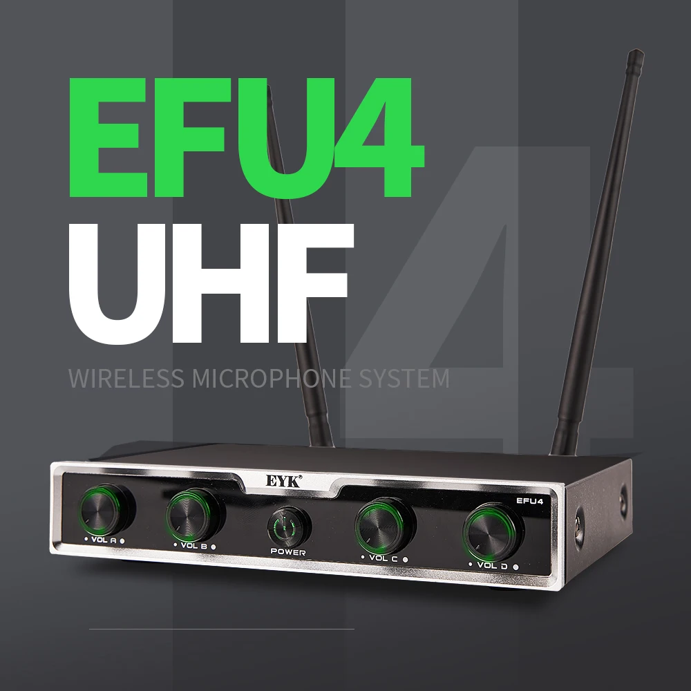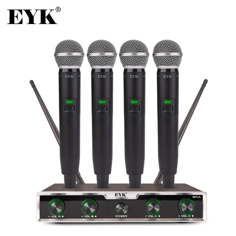 EYK EFU4 4 канальный ручной динамический караоке микрофон UHF полоса фиксированная частота беспроводной микрофон до 60 м для церкви DJ