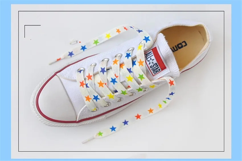 Купить 1pair Fashion Rainbow Star Flat Shoelaces Women Men Shoestrings For Casual High-top Canvas Sneakers White Shoes Laces |