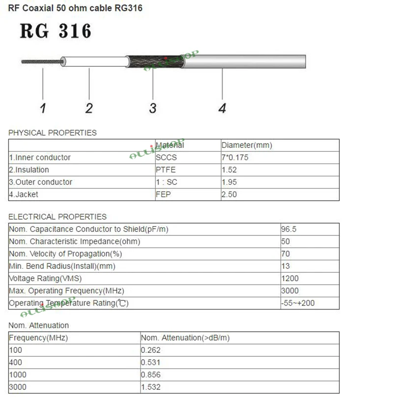 Отзывы о Коаксиальный кабель RG316 RG-316 Coax радиочастотный Разъем Pigtail 50 Ом M17/113 3 м/5 м/10 м -