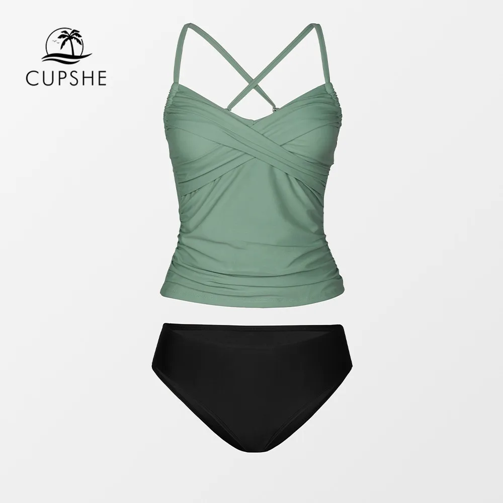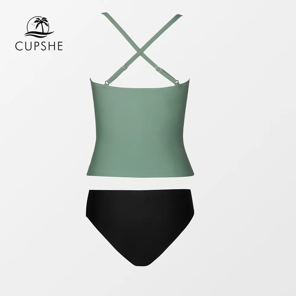 CUPSHE зеленый Твист со средней талией танкини купальник для женщин сексуальный - купить