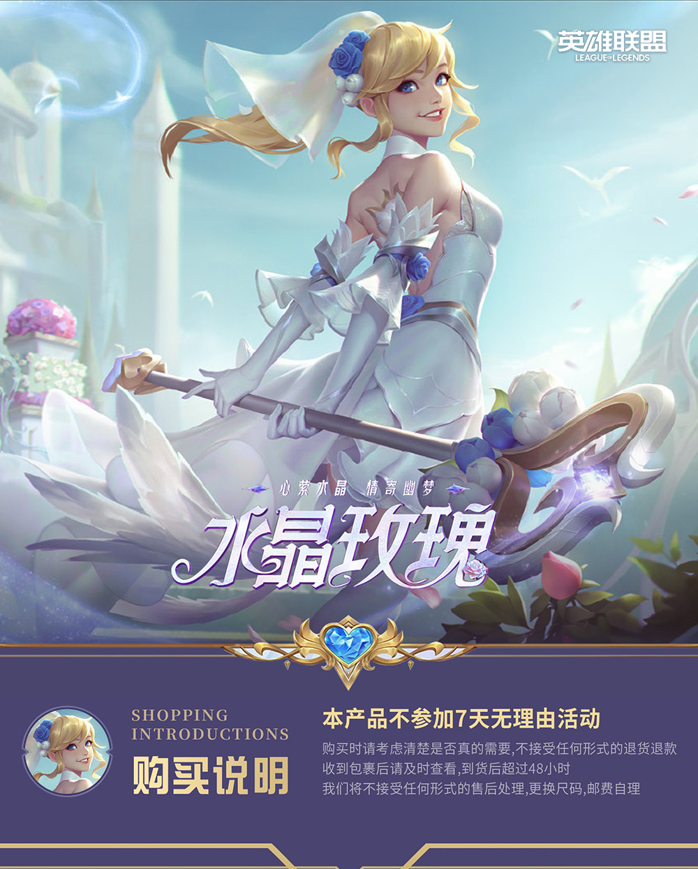 Косплей-костюм косплея леди люминесцентной с кристаллами розы из игры LOL - купить