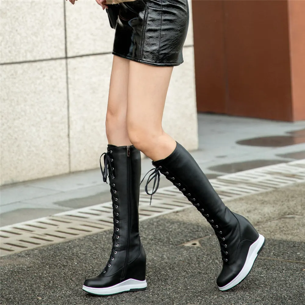 Отзывы о Кроссовки женские из натуральной кожи на шнуровке высокий каблук повседневная
