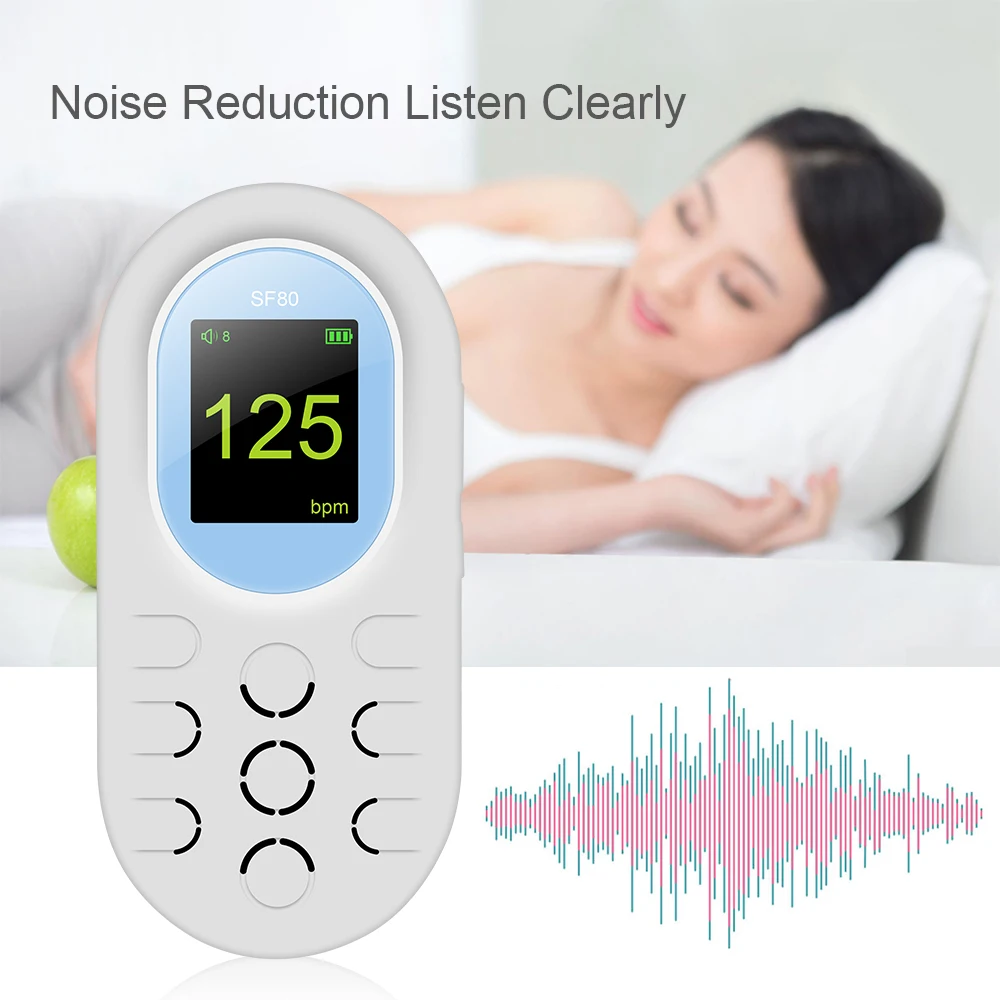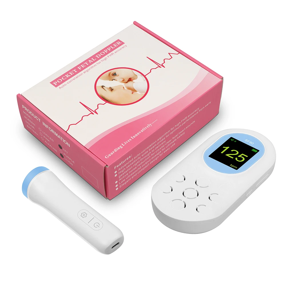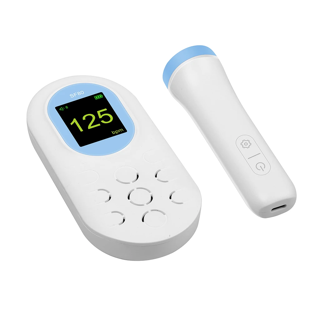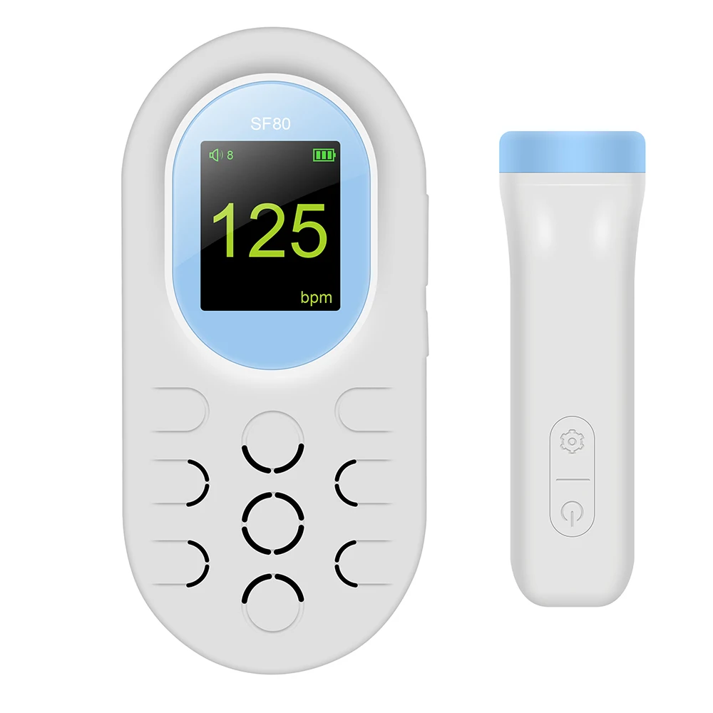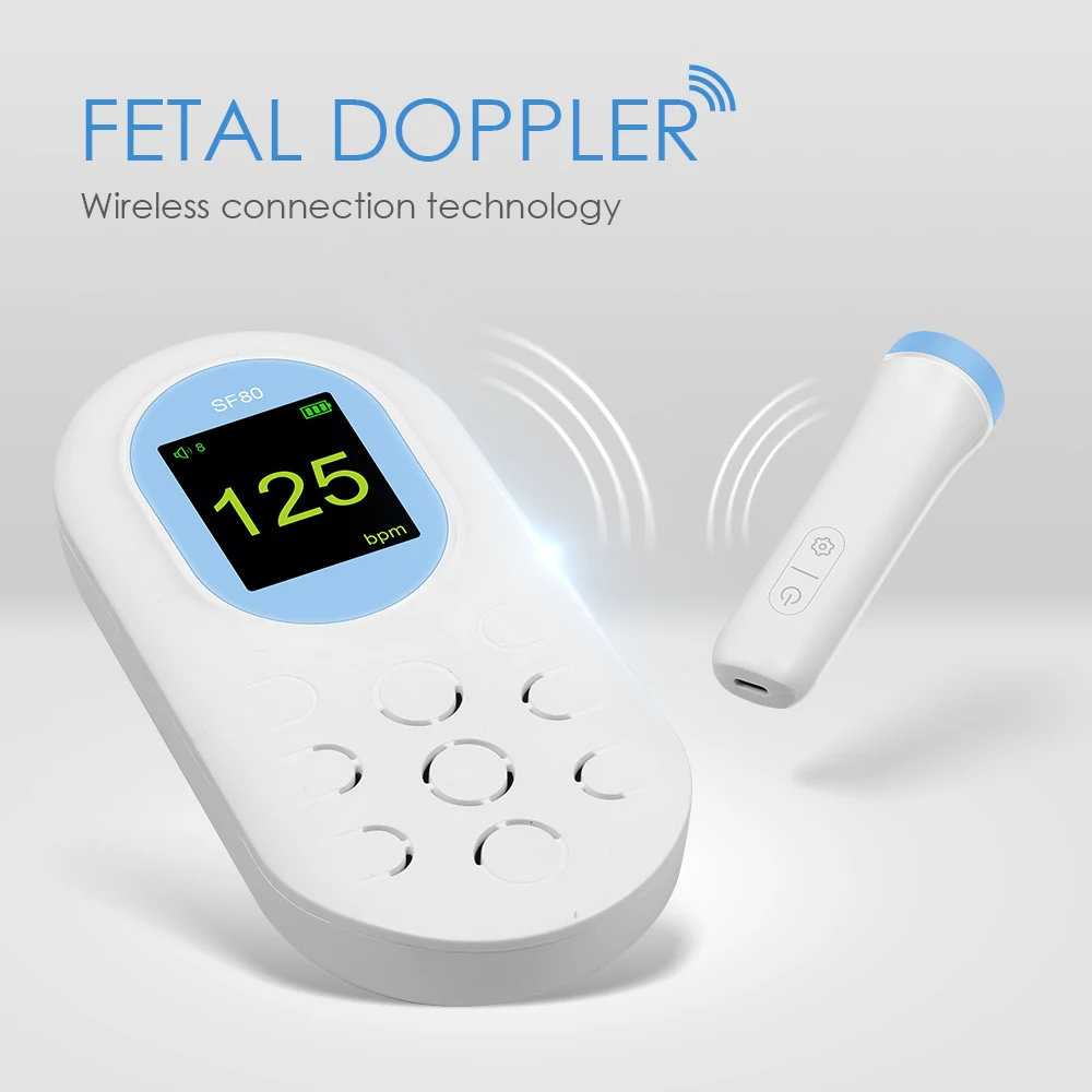 SF80 фетальный допплер-это ручной ультразвуковой монитор сердцебиения ребенка, используемый для просмотра, прослушивания и извлечения сердцебиения новорожденного ребенка.
