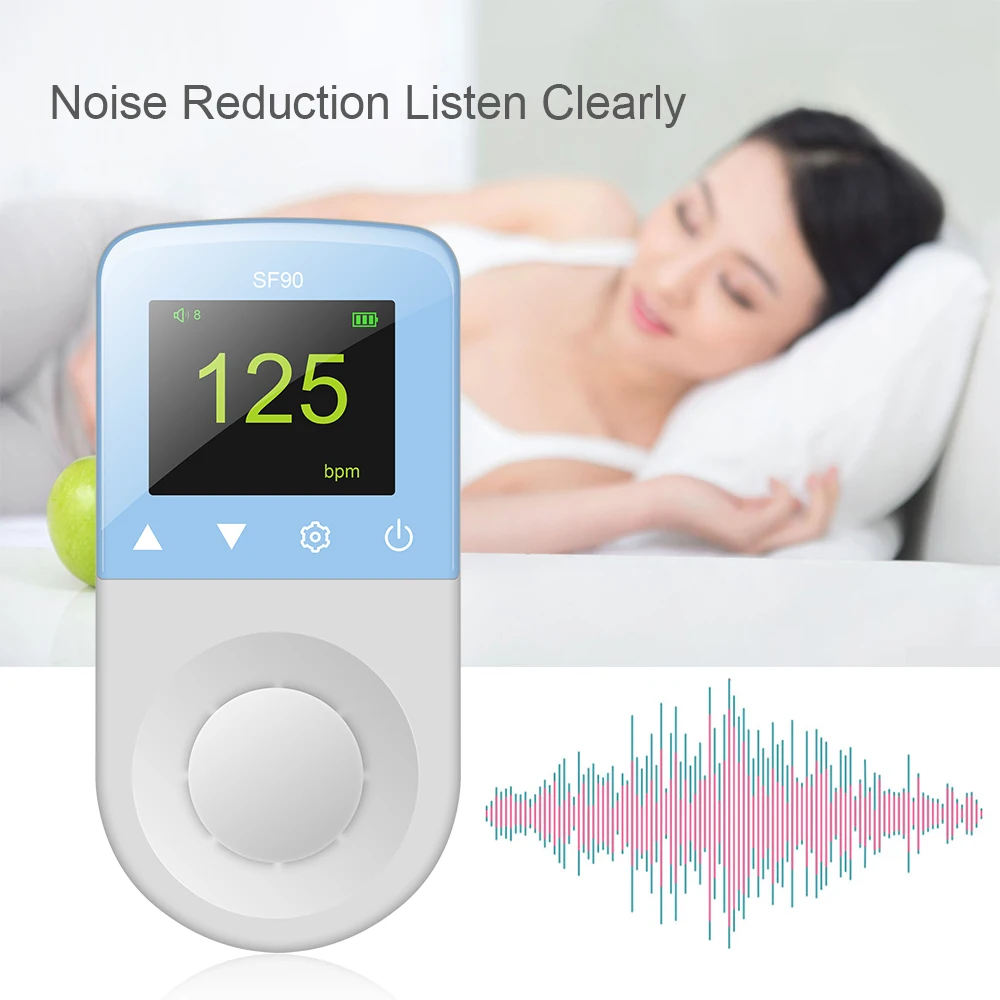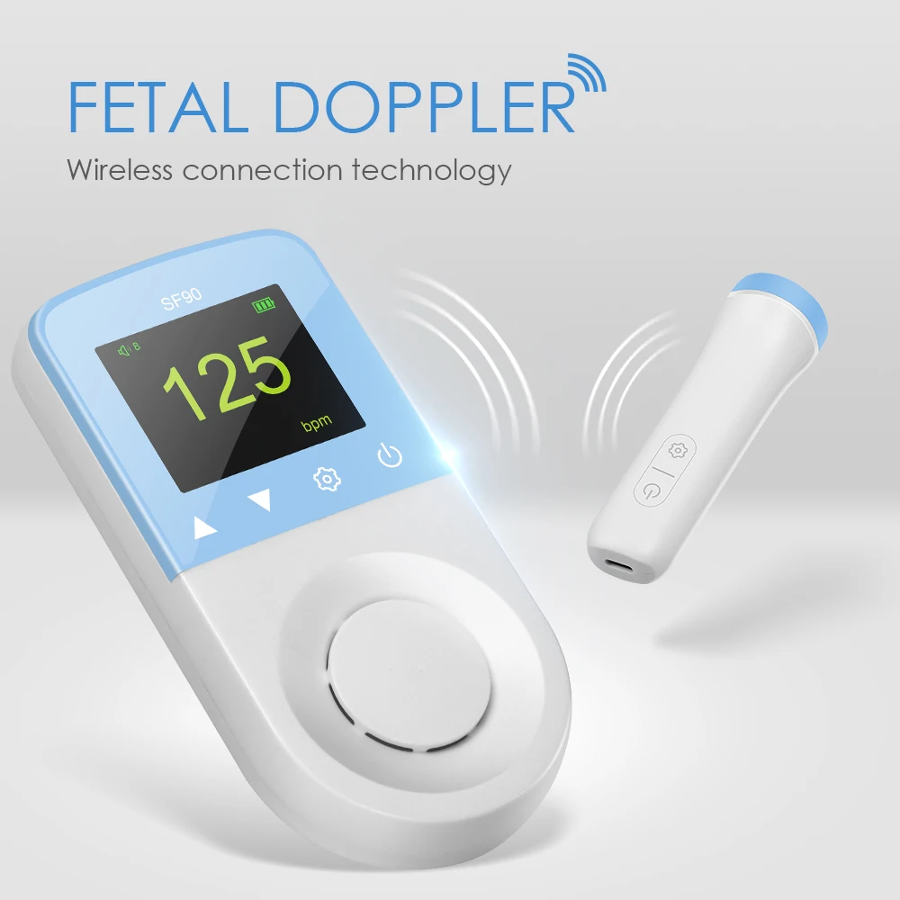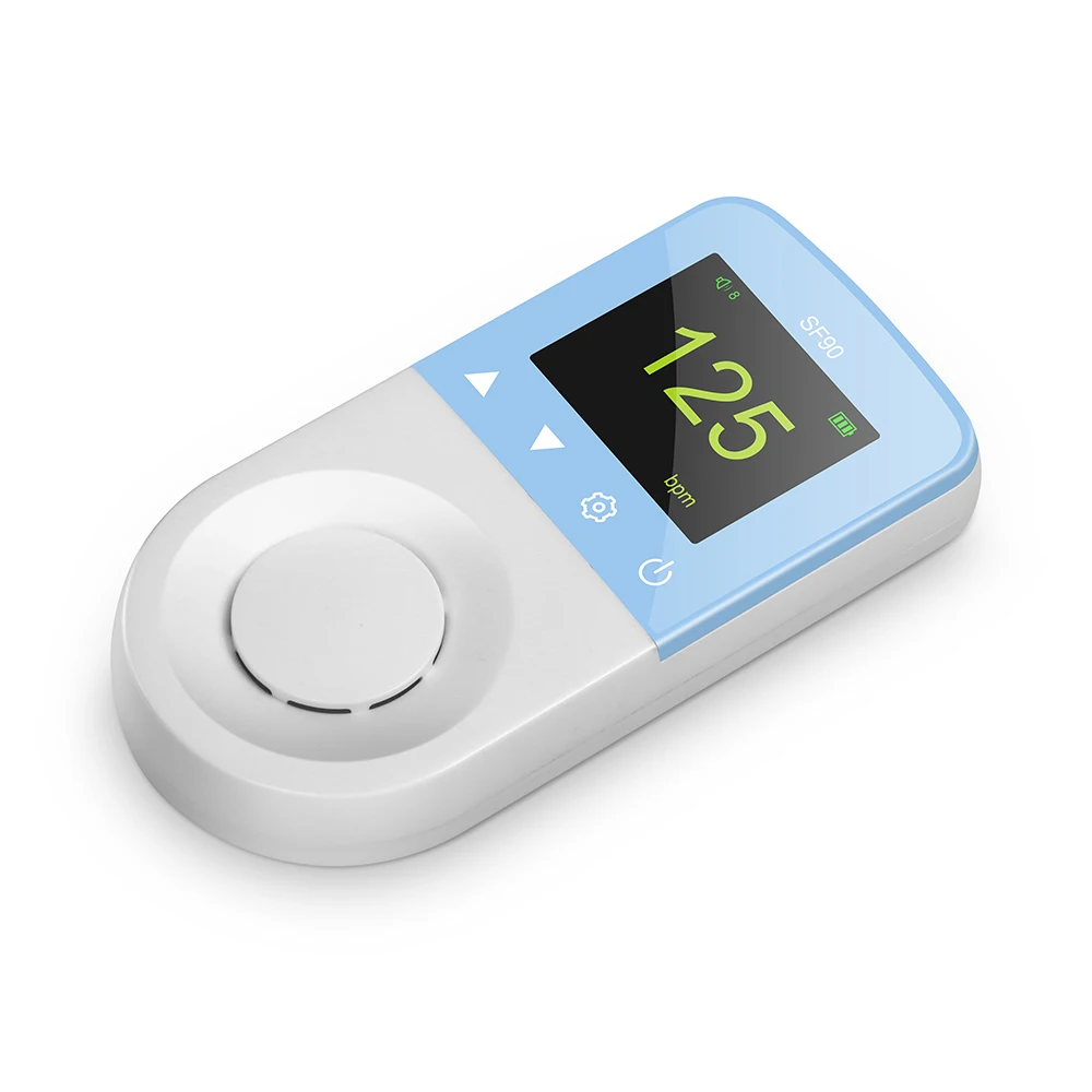 SF90 фетальный допплер-это ручной ультразвуковой монитор сердцебиения ребенка, используемый для просмотра, прослушивания и извлечения сердцебиения новорожденного ребенка.