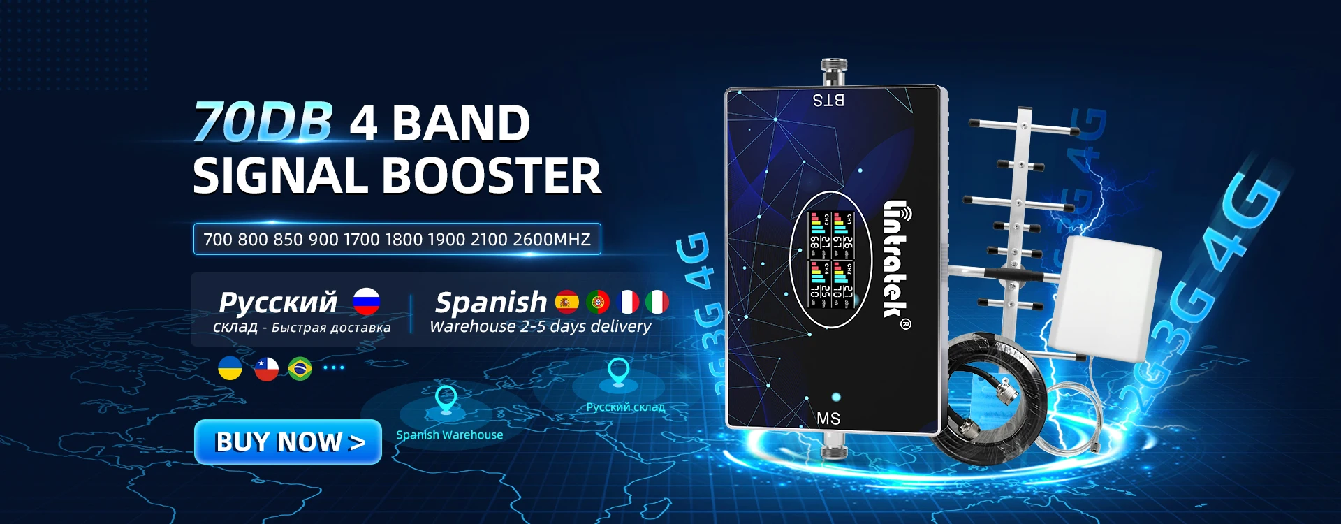 4, двух Диапазонный усилитель сигнала, 70db с высоким коэффициентом усиления, более мощный. Решить все проблемы сигнала, 1 * 4-полосный усилитель = 4 * однополосный усилитель! Доставка с испанского склада и российского склада: