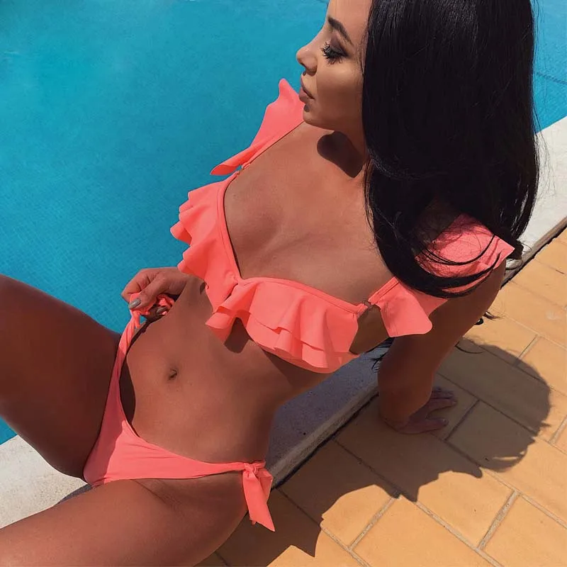 Отзывы о 2022 однотонный купальник с двойными оборками летняя пляжная одежда пуш-ап