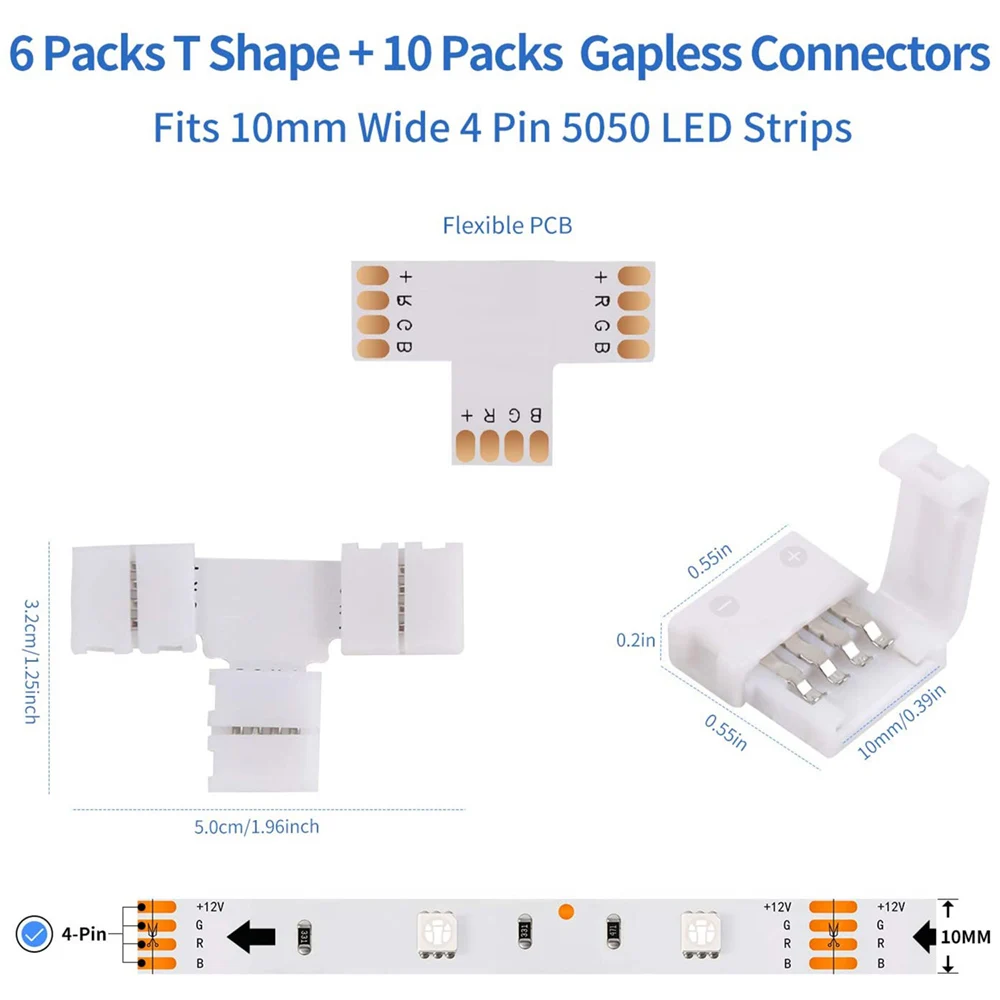 5 шт. Т-образный Разъем: не требуется пайка. Все наши разъемы доступны по цене и просты в использовании. Помочь организовать Светодиодные ленты светильник инструкции по установке и для того, чтобы ваш светильник для того чтобы повернуть на идеальный 90 ° угол во время установки.