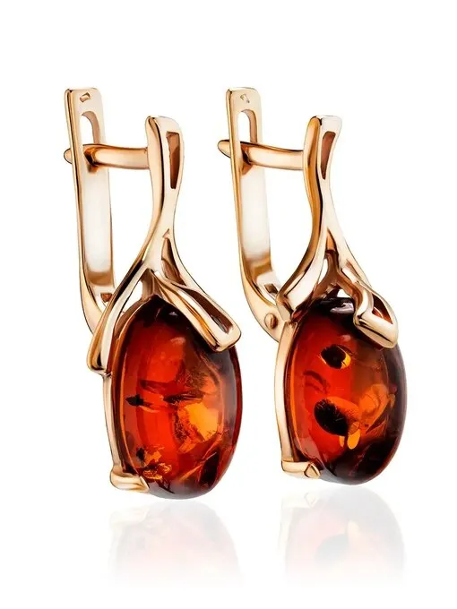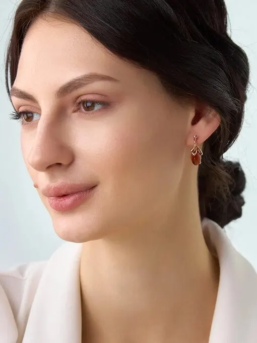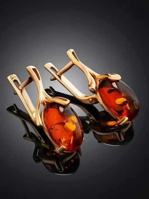 DescriptionКрасивые серьги из золочёного серебра и янтаря коньячного цвета «Крокус»