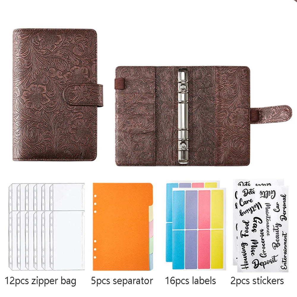 Features: High Quanlity: Our notebook binder are made of high quality PU leather, protecting your privacy better than clear plastic binder cover. Comfortable organized storage for passports, receipts, tickets and cards, and a pen loop to hold your pen. A5/A6 Cash Envelope Binder: To help you make budgeting and managing finances easy. A6 notebook binder is designed with 6 pre-punched holes, strong for standard A6 binder inserts. Includes 1 pen holder, 2 card slots, dual cash pockets, plus a solid snap fasteners for secure closure. Versatile Storage: The 6-ring notebook binder comes with 12pcs translucent zippered binder pouches, perfect for storing bills, invoice, cash, coupons, cards, stamps, business cards, credit cards, and more. Besides, with 5pcs separator, 2pcs English stickers , 2pcs colorful stickers(16 sheets label stickers). 12pcs A6 Clear Binder Pouches: Made from PVC material, the binder pouches features soft, tear resistance and waterproof. Translucent material makes a clear view for quick and easy identification. Zipper closure is more secure for the items inside. Great document organizer for home, office, meeting, school use, and travel. Easy Operation: Press the ends can open the rings to add or remove the binder pouches, then press the rings to close. Easy for you to customize your own folders. Specifications: Material: PU + Metal + PVC Color: champagne gold, silver gray, dark blue, black, dark green, coffee brown Size: A5: 23.5*17.5cm A6: 18.9*12.9cm Package Contents: 1 x A6 6 Ring Leather Binder(with 16 pcs small labels) 12 x clear zipper pouches 5 x separator 2 x English stickers Only the above package content, other products are not included.