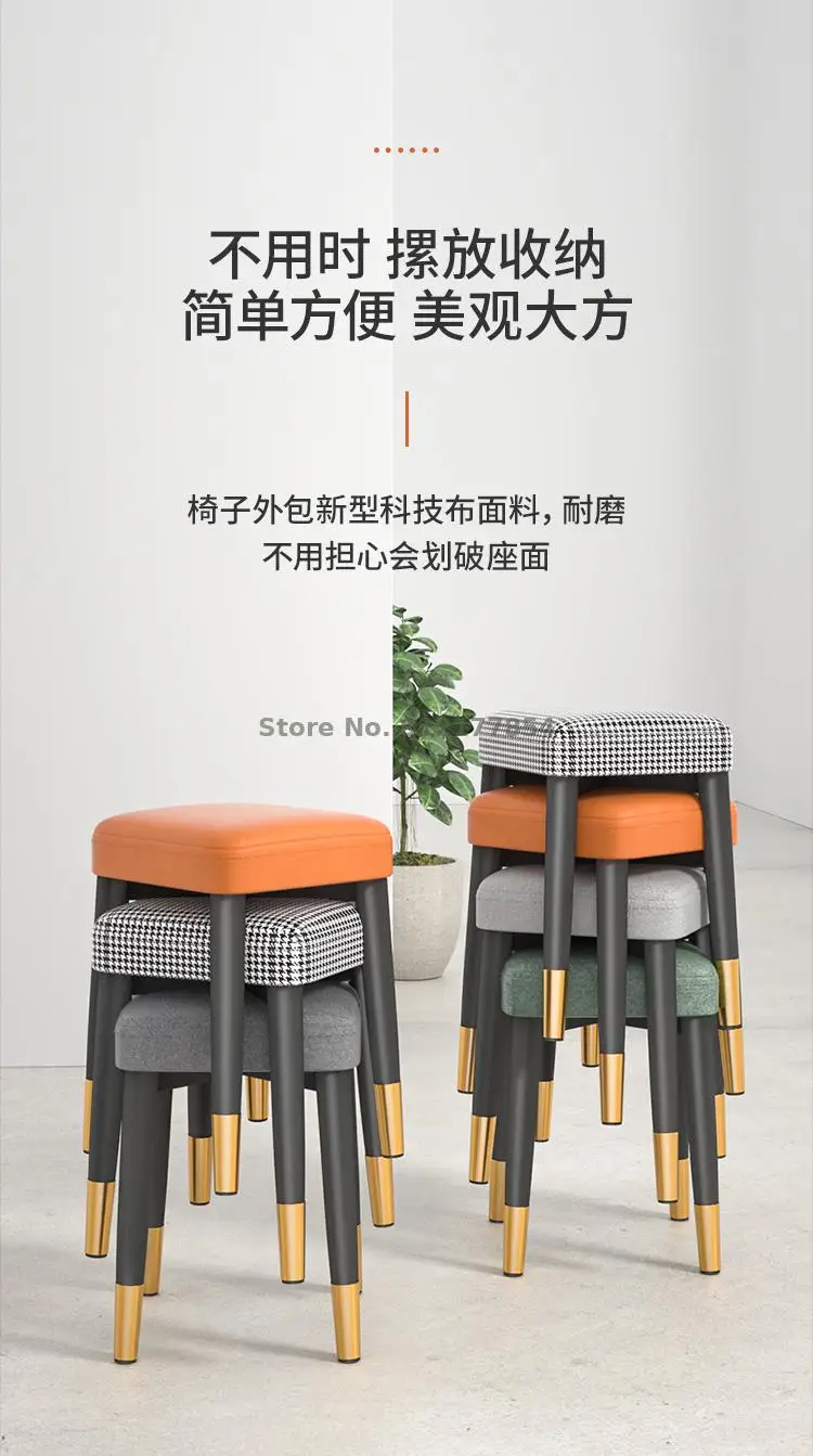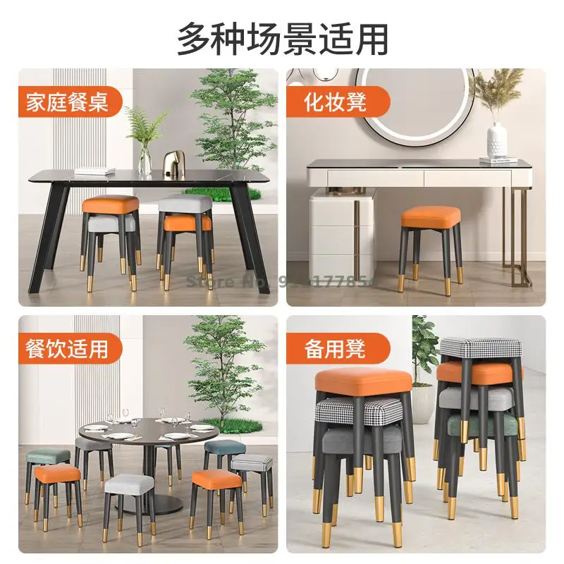 Купить Стул для обеденного стола Home Light Luxury, креативный, небольшой квадратный, может быть складываемым, современный минималистичный дизайн, подходит для макияжа.