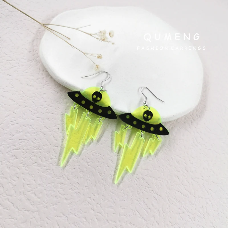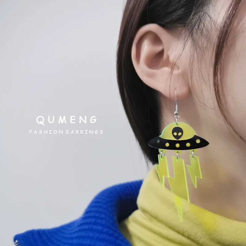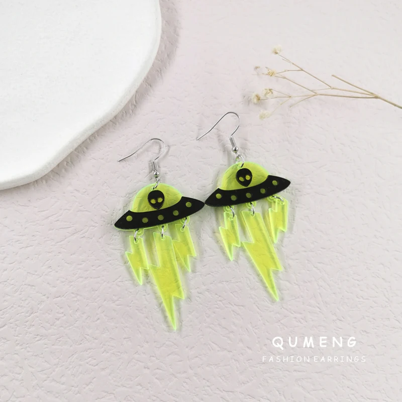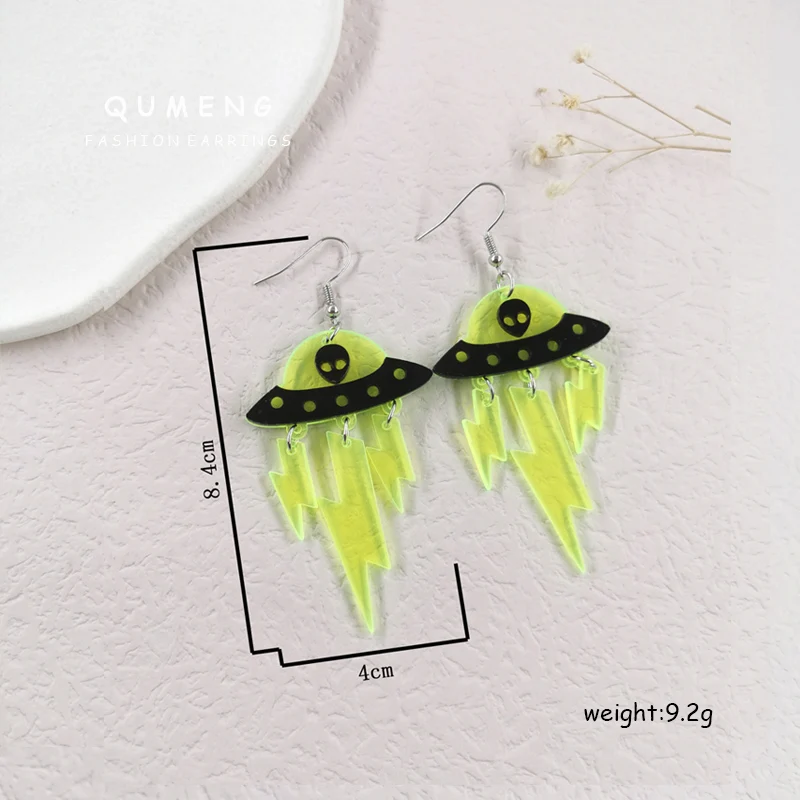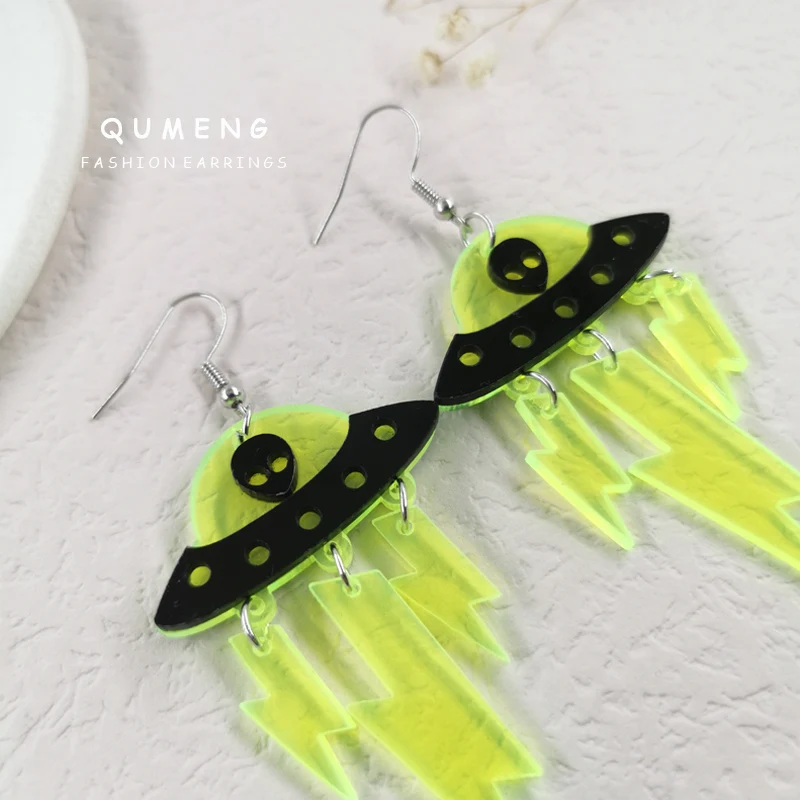 Отзывы о Подвески-штурмовики из акрила с светящимся эффектом на тему "Панк-смешные инопланетяне НЛО и летающая тарелка" для женщин. Милые космические корабли вечеринок хип-хопа