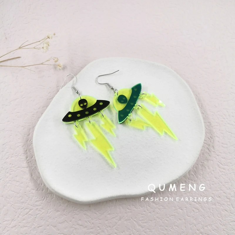 Купить Подвески-штурмовики из акрила с светящимся эффектом на тему "Панк-смешные инопланетяне, НЛО и летающая тарелка" для женщин. Милые космические корабли для вечеринок хип-хопа.