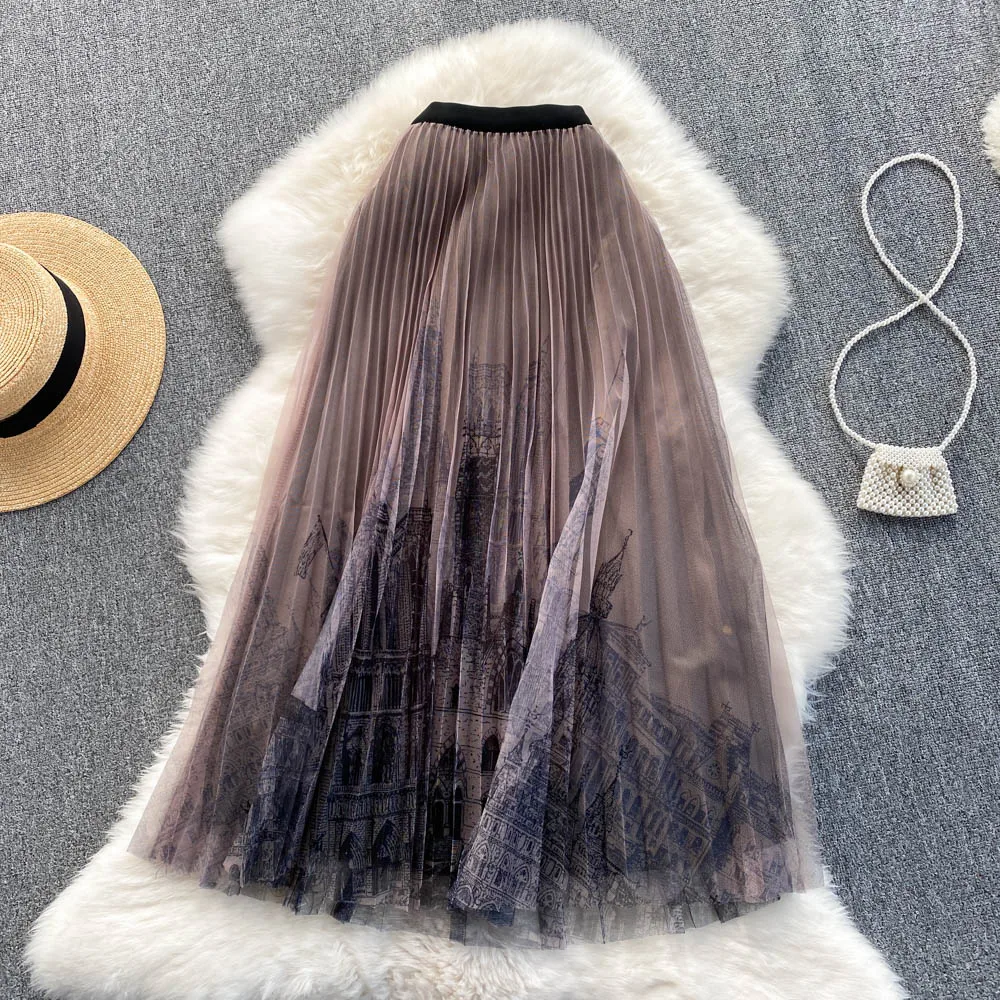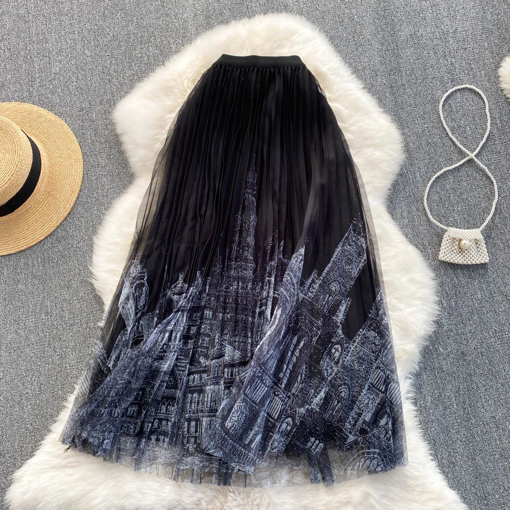 Летняя женская сетчатая юбка с высокой талией плиссированная принтом замка из - купить