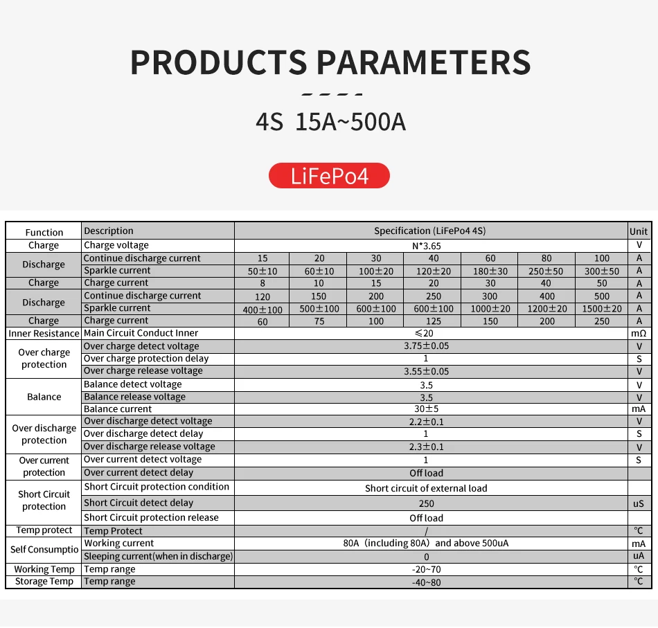 Для 4S 12V 14,6 V LiFePO4 аккумулятор, такой как 12V 100Ah,200Ah,280Ah... и т. Д., этот 4S BMS может защитить LiFePO4 аккумулятор.