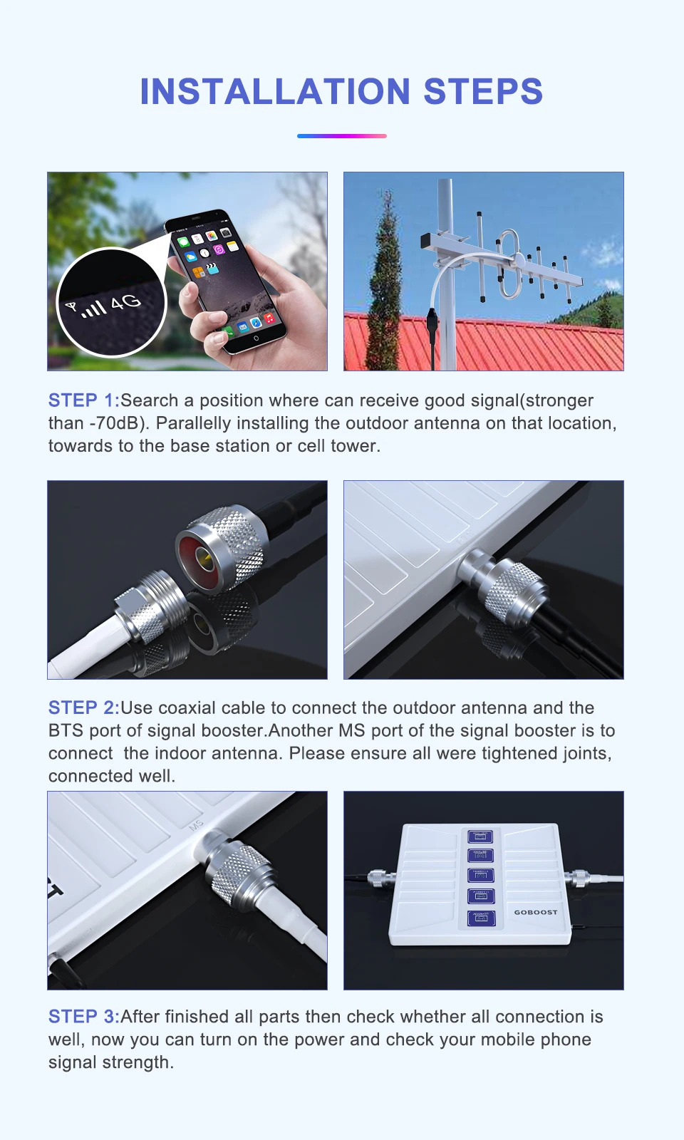 Отзывы о Усилитель сигнала GOBOOST для сотовой связи с 5 полосами и усилением до 70 дБ поддерживающий LTE на частотах 700 850 1800 1900 MHz