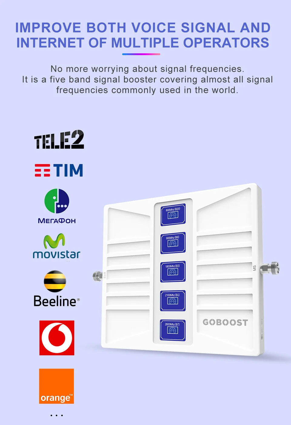 Усилитель сигнала GOBOOST для сотовой связи с 5 полосами и усилением до 70 дБ поддерживающий LTE на частотах 700 850 1800 1900 MHz - купить