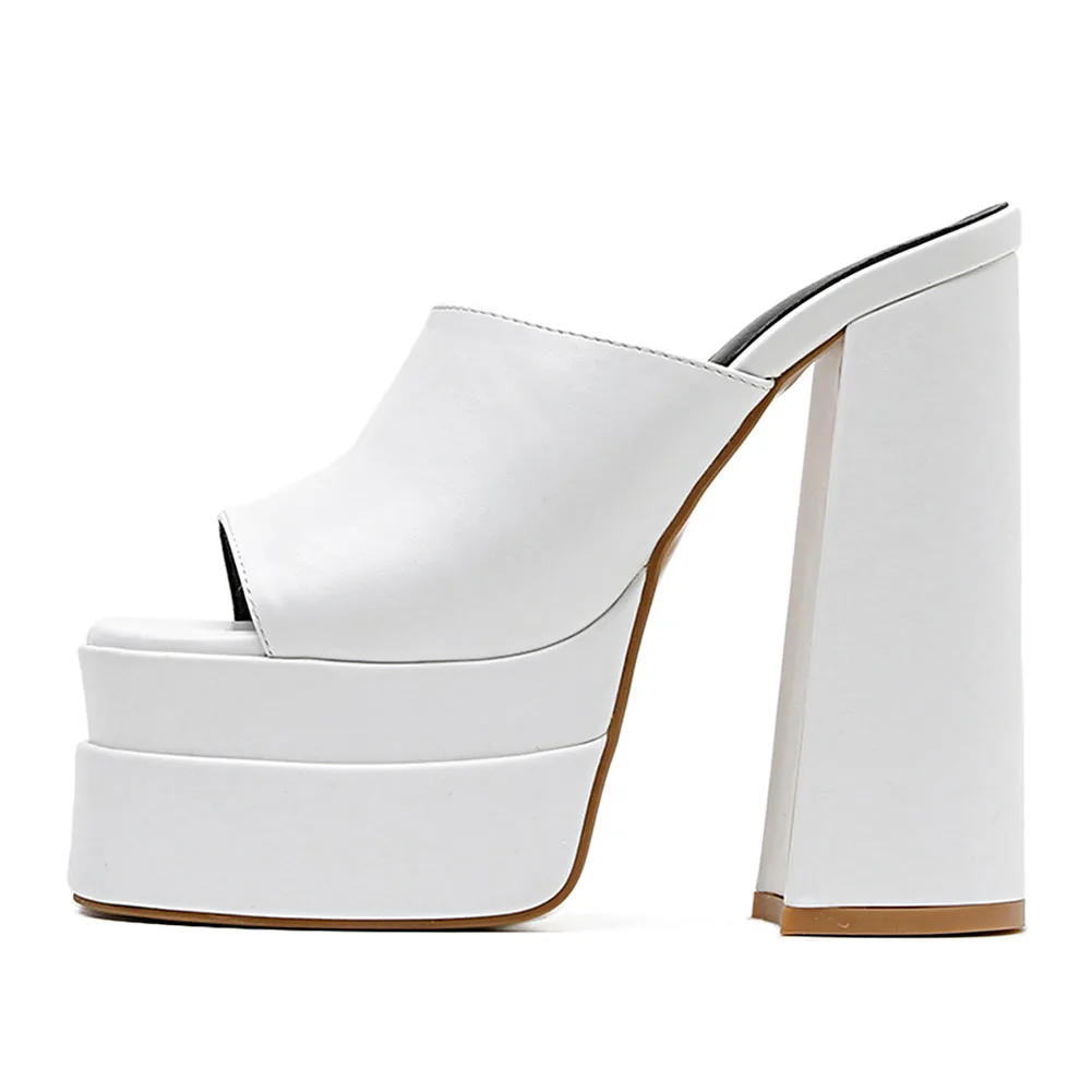 Мюли на массивной платформе удобные летние однотонные шлепанцы Высоком толстом - купить