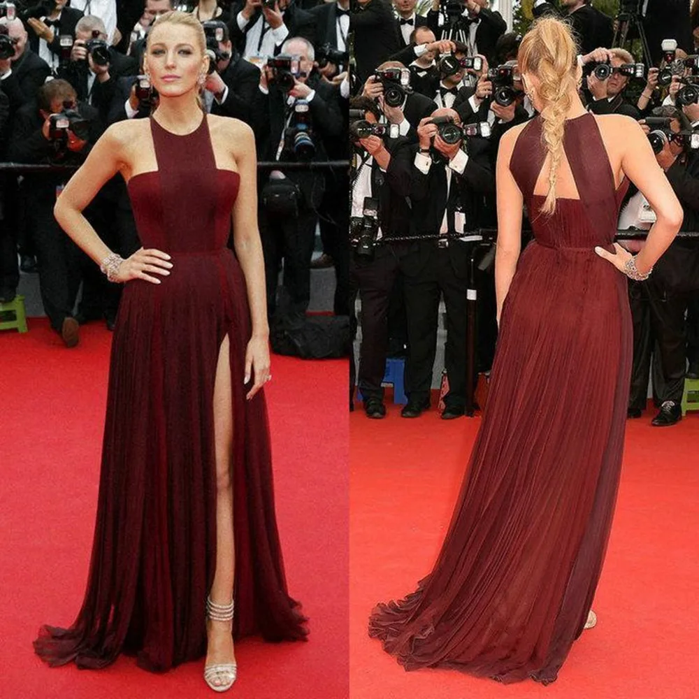67th кинофестиваль Канны Красный ковер вечерние бордовые шифоновые платья - купить