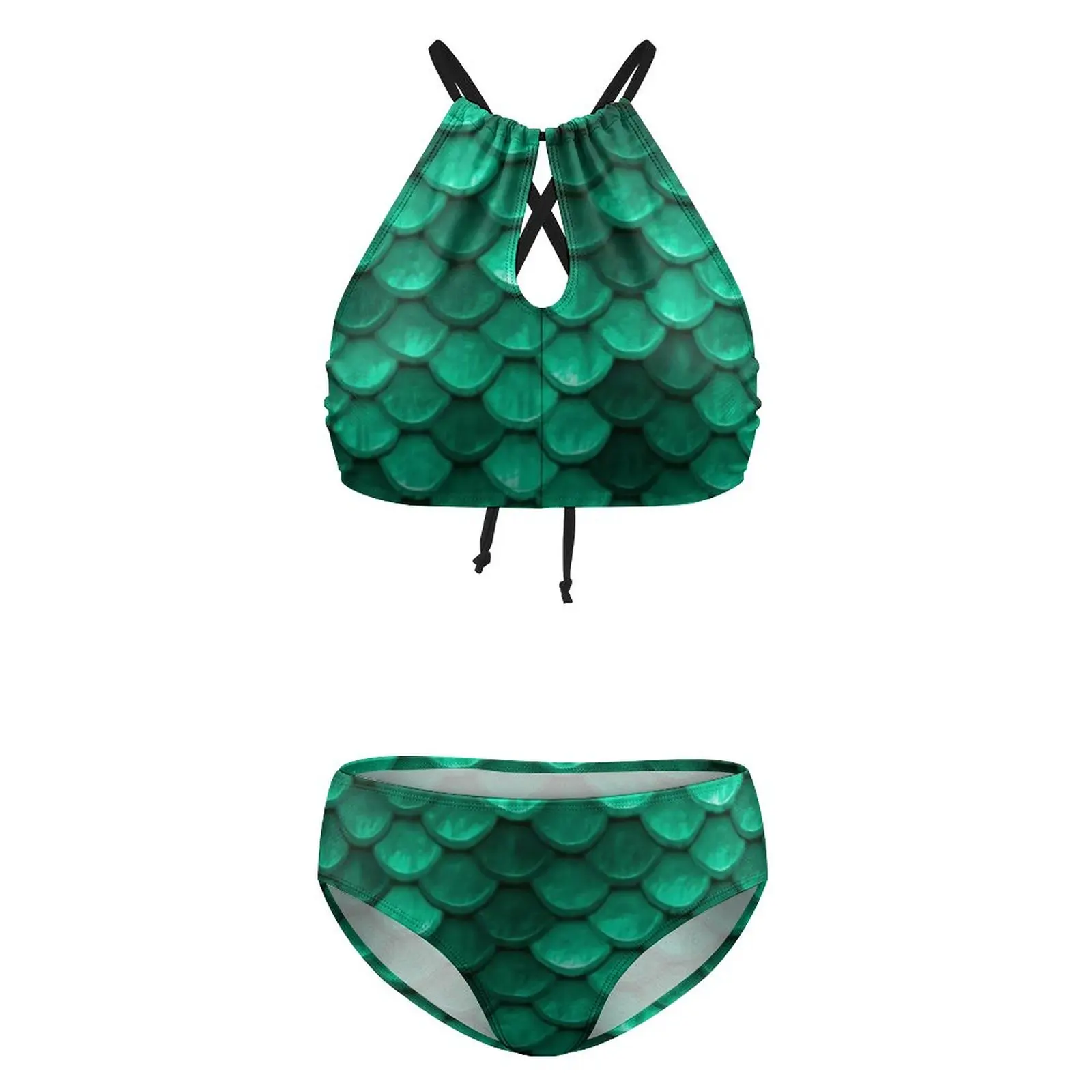 Зеленое бикини с юбкой-годе купальник красивыми рыбьими чешуйками сексуальный - купить