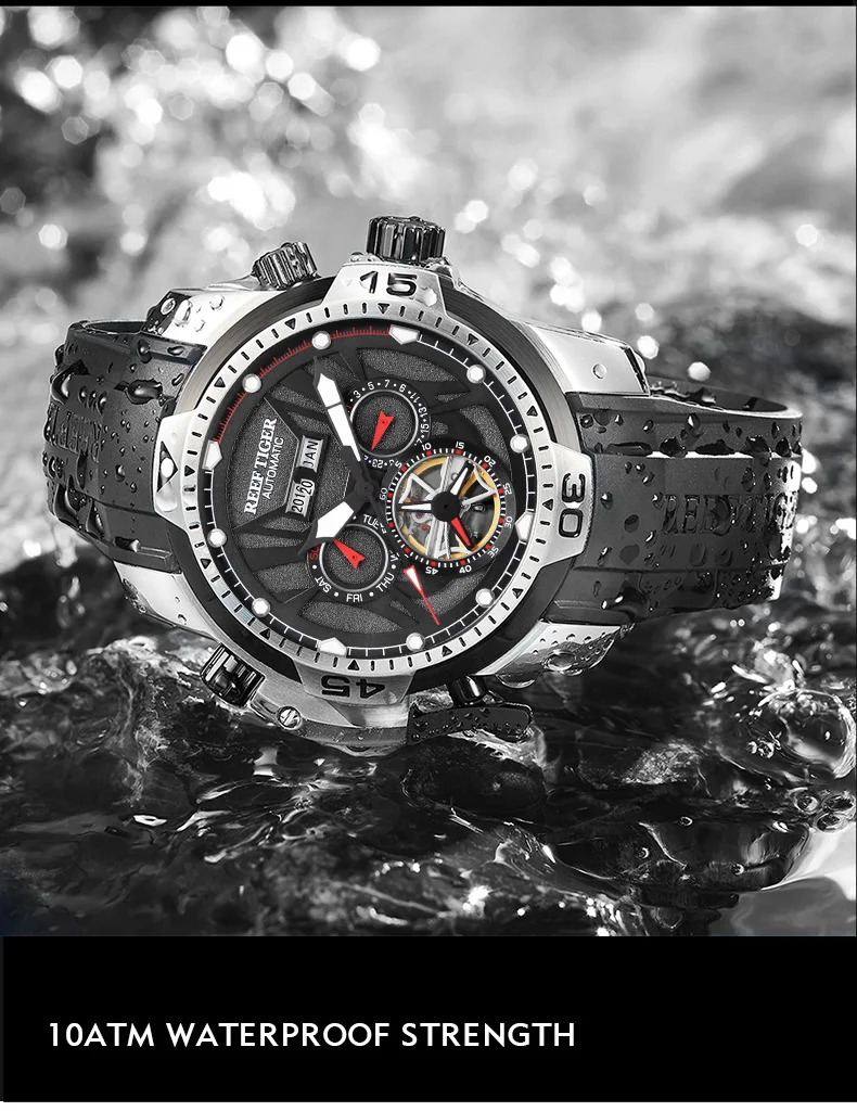 Мужские Водонепроницаемые механические часы на резиновом ремешке с календарем - - купить
