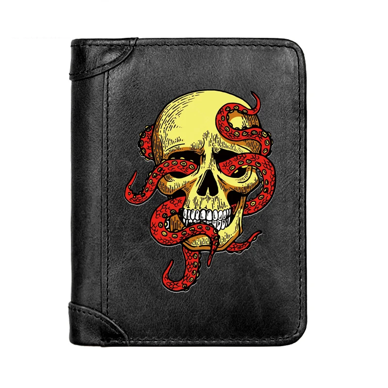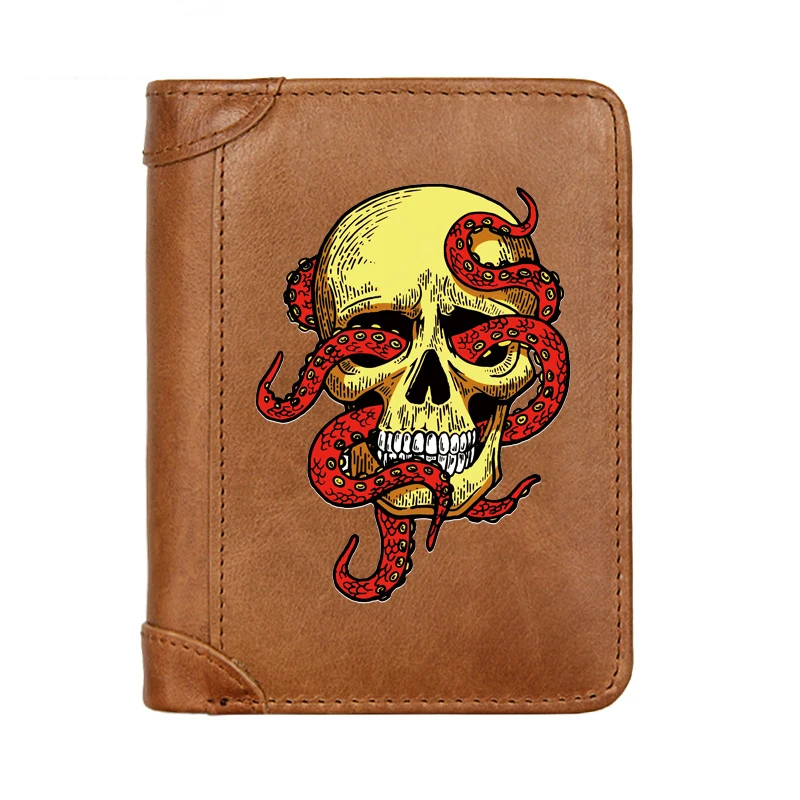 Купить Мужской кошелек в стиле стимпанк из натуральной кожи с рисунком осьминога и
