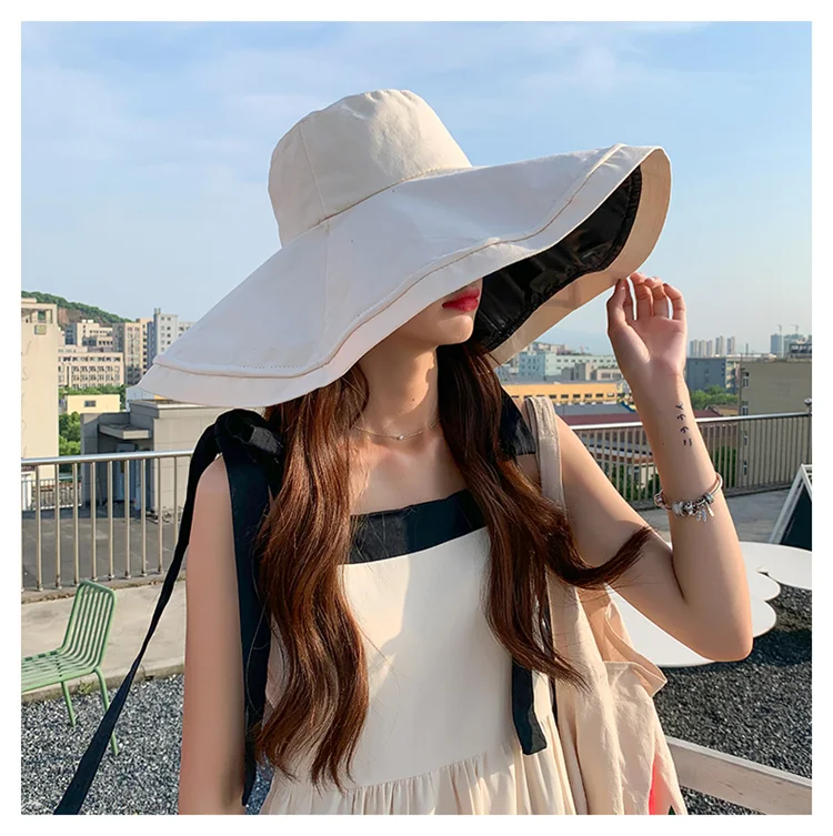 Отзывы о 18CM Super Large Wide Brim Women Beach Hats Double-Sided Foldable Anti-UV Girl Summer Sun Hat Panama Female Sunscreen Cap Bonnet - купить по