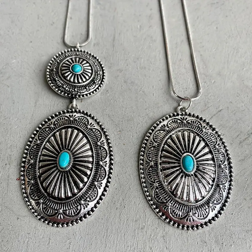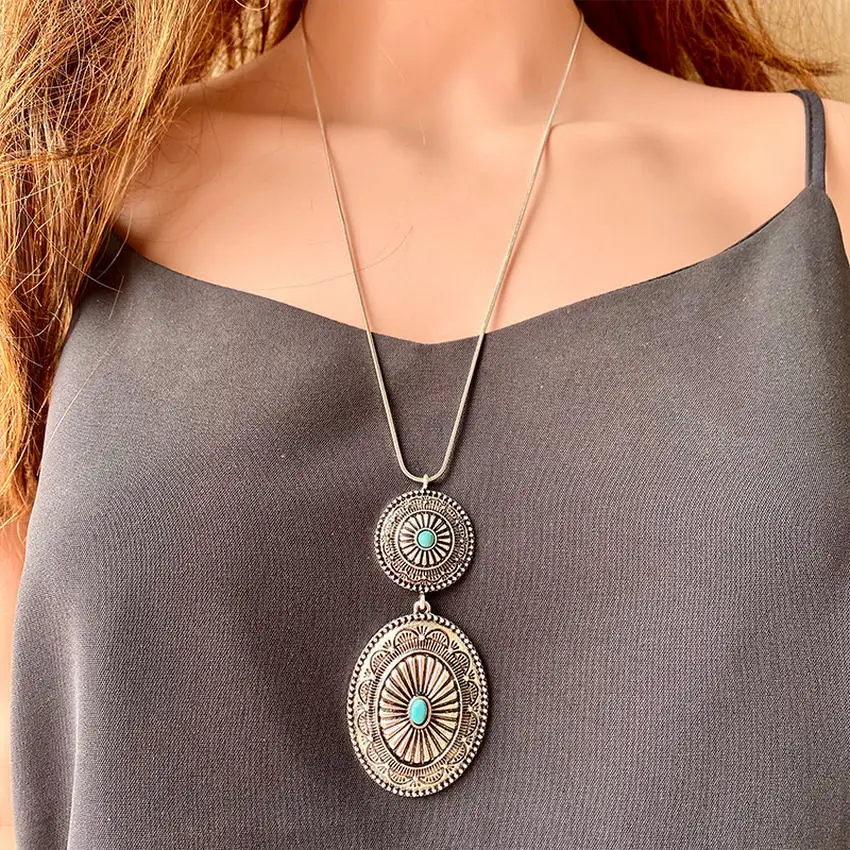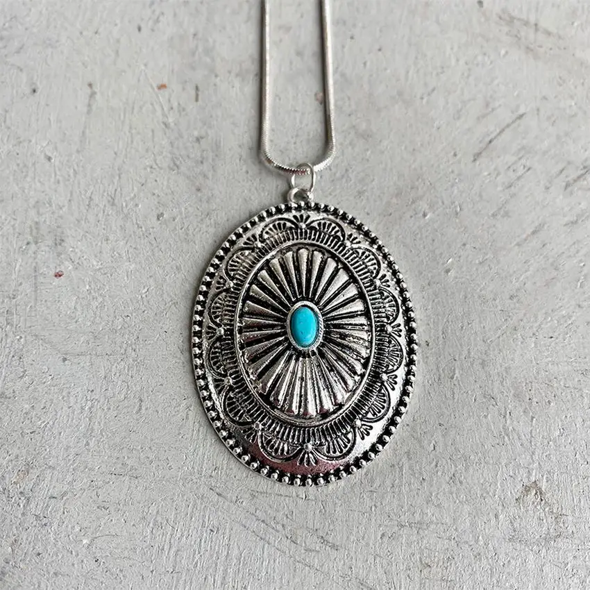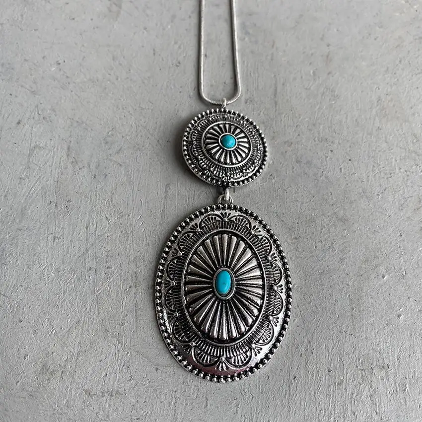 Винтажное серебряное бирюзовое ожерелье Concho, ожерелье для женщин, новинка 2022, богемное этническое ожерелье, цепочка под змею, ювелирные изделия, оптовая продажа