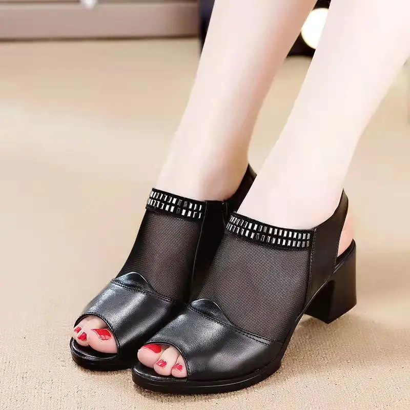 Отзывы о Летние туфли Aphixta на массивном каблуке женские шлепанцы прозрачные сетчатые