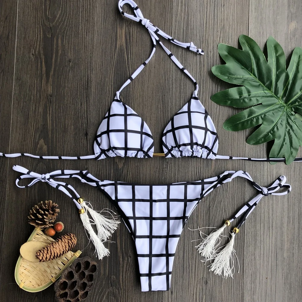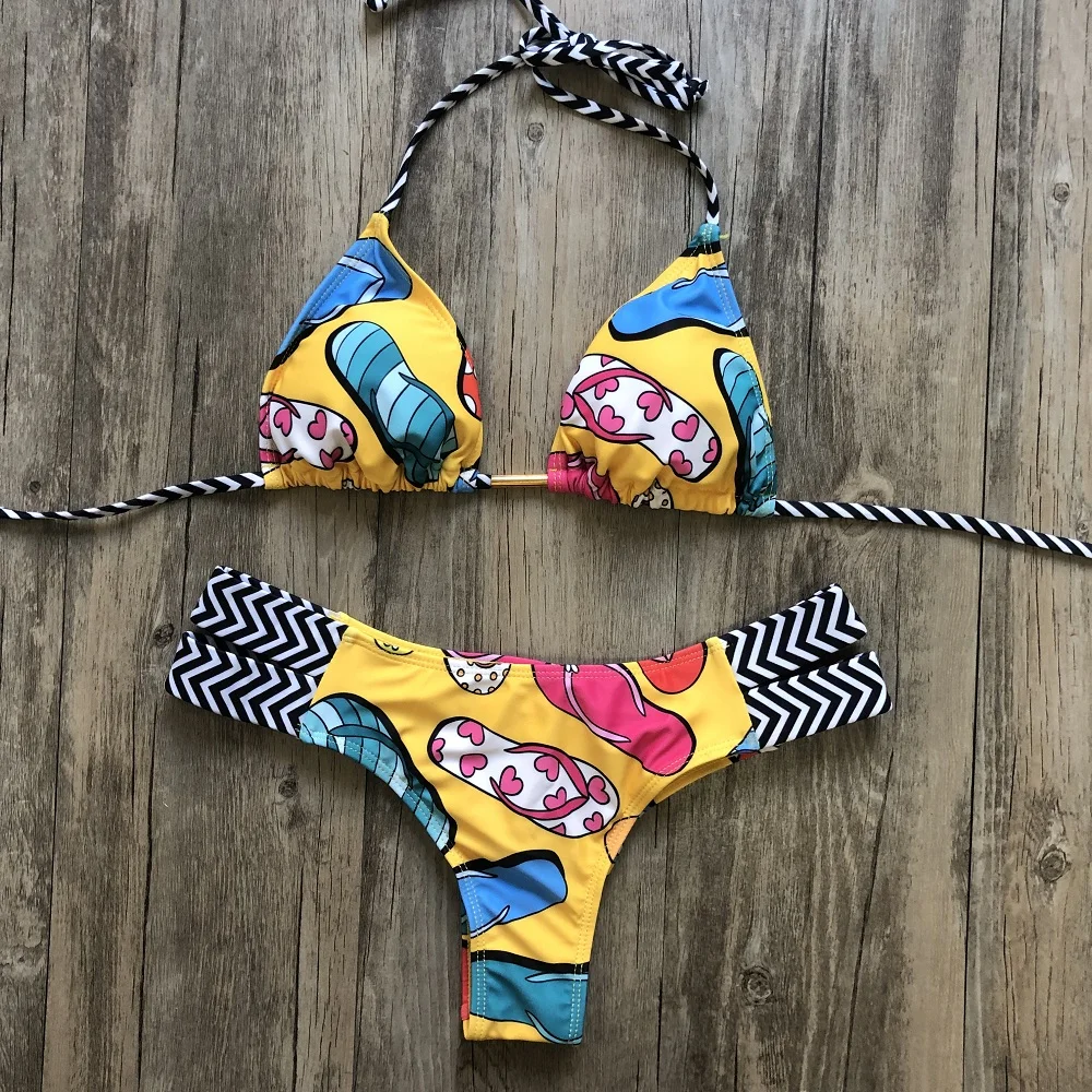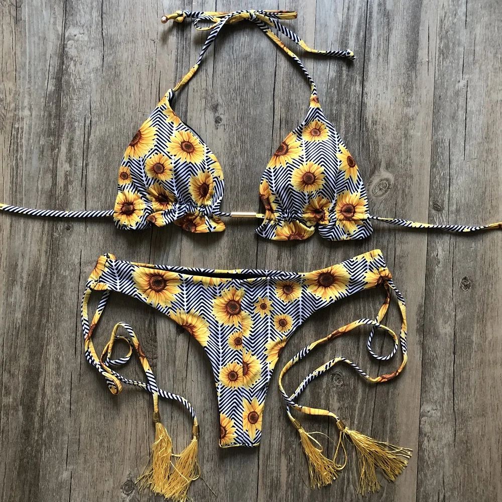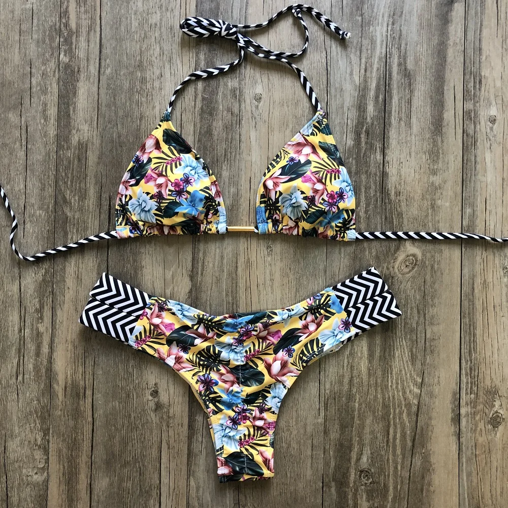 Купить 2022 сексуальный купальник с лямкой на шее пуш-ап Бразильское бикини тропическим